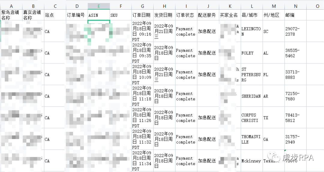 虎步RPA爬取完订单详细的信息后,自动导出数据报表。方便运营对买家数据进行处理。