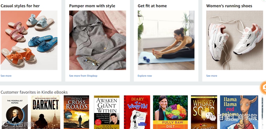 除了个人办公用品,最近去看亚马逊前台时,你就会发现了一个特别的地方——Women’s running shoes,女式跑鞋,这一个点也是可以发掘的。(PS:之前有朋友看了抖音视频的朋友问,亚马逊前台地址是多少? 不知道的朋友可以记一下这个:https://www.amazon.com/),站点切换可以去看抖音教程。