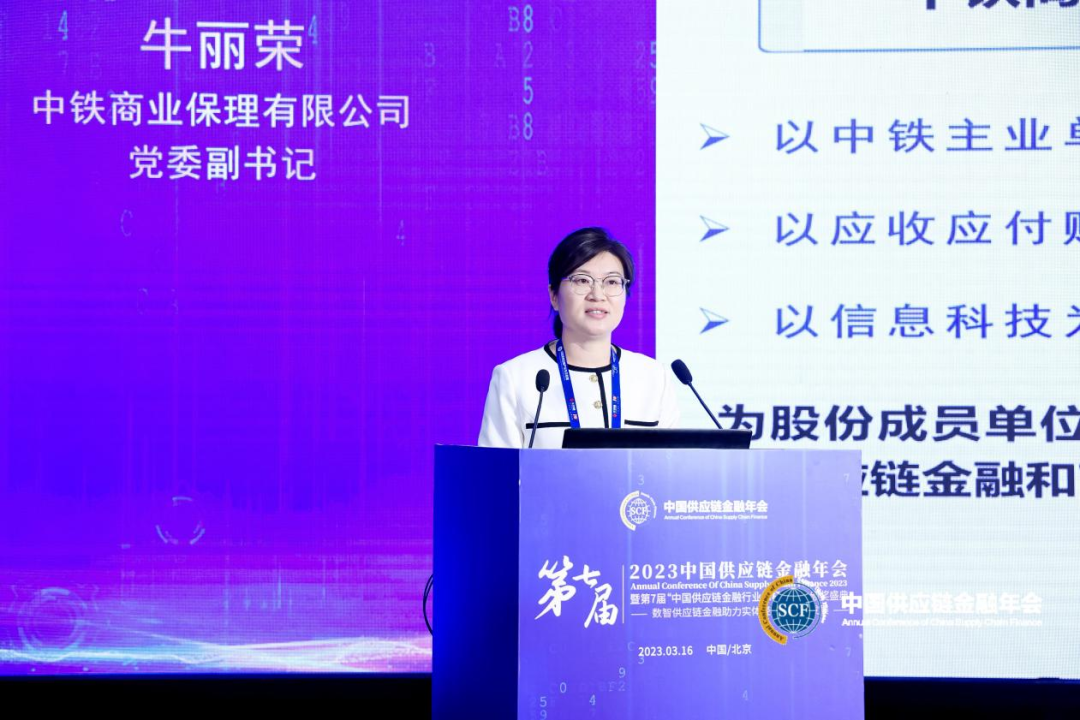 牛丽荣的演讲主题为“中铁商业保理有限公司‘反向保理+基金’模式助力中国中铁高质量发展”,她介绍到,反向保理+基金的业务模式,主要是基于对中国中铁核心企业的贸易背景和资金需求进行深入分析。一方面,建筑企业目前面临的资金困境比较大,资金清收不畅,部分垫资项目资金回笼不畅;另一方面,核心企业确实在融资角度遇到了很多困难,流贷项目表面融资审批难,二级单位为主体融资穿透下沉比较困难,核心企业对下游供应商应付账款偿付需求通过中铁保理公司进行融资,延长了核心企业资金支付周期,缓解支付压力,但这个过程往往发生在项目的中后期,为了满足主业单位全流程的融资需求,逐渐将保理业务服务范围向核心企业项目中前期延展,形成反向保理业务与基金业务相结合,以一揽子的资金解决方案实现核心企业前期融资需求落地。未来,中铁商业保理将持续深入贯彻新发展理念,推动信息科技融合产品创新,释放更大的效能。