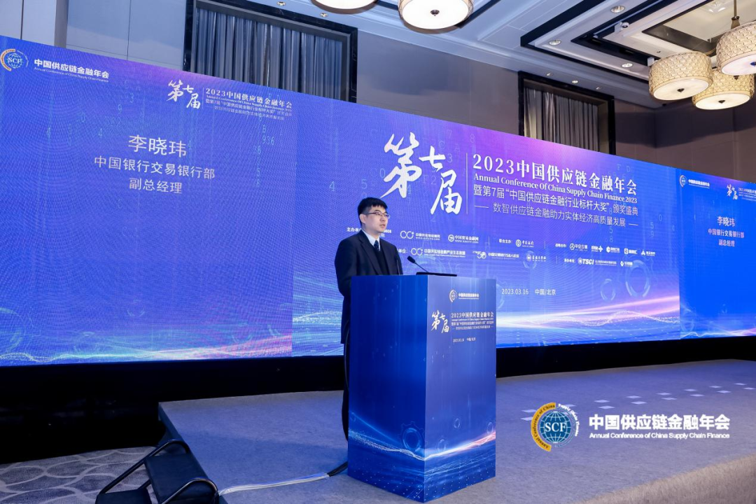2023年3月16日,第七届中国供应链金融年会(春季)暨第七届中国供应链金融行业标杆大奖颁奖典礼在北京隆重召开。本次年会是由《贸易金融》杂志、中国供应链金融网、中国贸易金融网主办;中国银行股份有限公司联合主办。中企云链、联易融、随信云链、简单汇、微众信科等单位联合战略支持;中国供应链金融产业生态联盟、中国交易银行50人论坛、中国人民大学商学院EMBA求实文学社作为支持单位;北京财资和供应链应用技术研究院承办的一场以数智供应链金融助力实体经济高质量发展为主题的年度盛会。为打造行业生态金融合作、共享平台,实现行业共赢,本次大会线下超20位重磅嘉宾进行交流和分享,深度解析行业,与近300位线下参会嘉宾、线上最高同时在线人数将近50000人共谋战略发展。