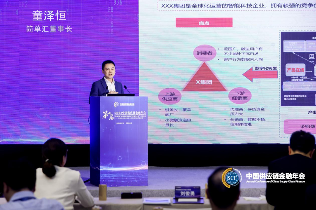 童泽恒的演讲主题为“助力财资数字化转型 提升产业生态竞争力”,他指出,企业财资天然就是数据管理的中心,如果财资能够把数据管理有机整合起来,对推动整个企业数字化、产业数字化都具有非常重要的作用。行业的发展不能仅仅从一个单点或企业内部考虑,需要从企业生态圈的角度考虑,这是我们在实践中碰到的情况。他指出,再小的公司也不会只有一个系统,都是多个系统同时使用。在这种环境下,根据企业不同阶段和银行不同诉求,提供不同的针对新连接的服务,简单汇把机制有效连接起来实现最大化的降本增效,把简单留给客户,把复杂留给自己。另外,供应链票据可以从源头上把握交易的真实性,把合同、发票等的物理数据都串联起来,真实地给到银行和金融机构,为后续的信用风险防控提供了非常好的底层基座。