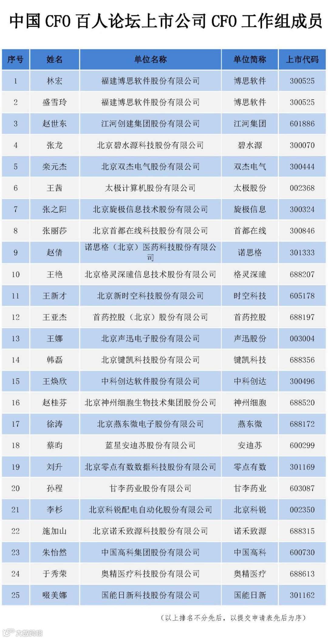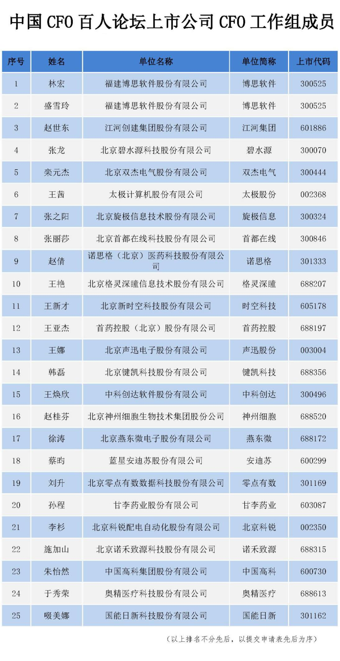 以下为完整中国CFO百人论坛上市公司CFO工作组成员名单: