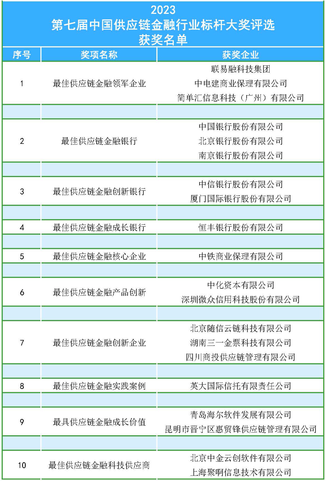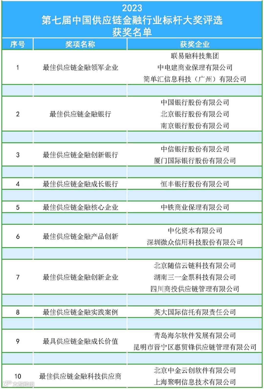 “第七届中国供应链金融行业标杆大奖”颁奖典礼现场以下为完整获奖名单: