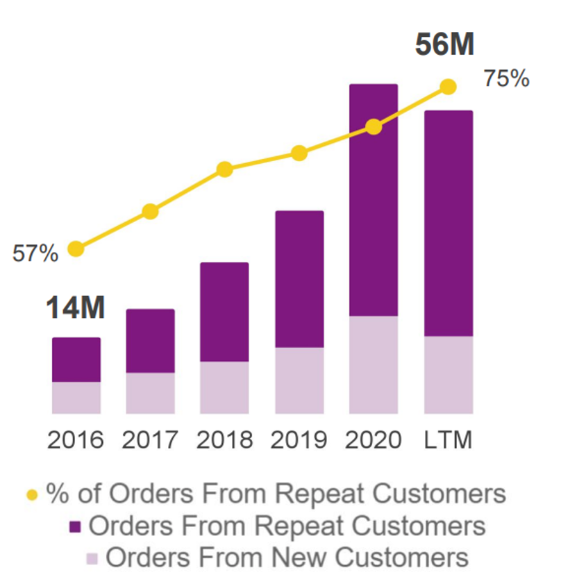第三季度,Wayfair活跃消费者数量较上季度略有下降,达2920万人,同比增长1.5%;但平均每位活跃消费者为Wayfair带来了高达484美元的营收,上季度为478美元。每位消费者的订单数量稳定在1.94个,回头客订单占比增至76.3%。