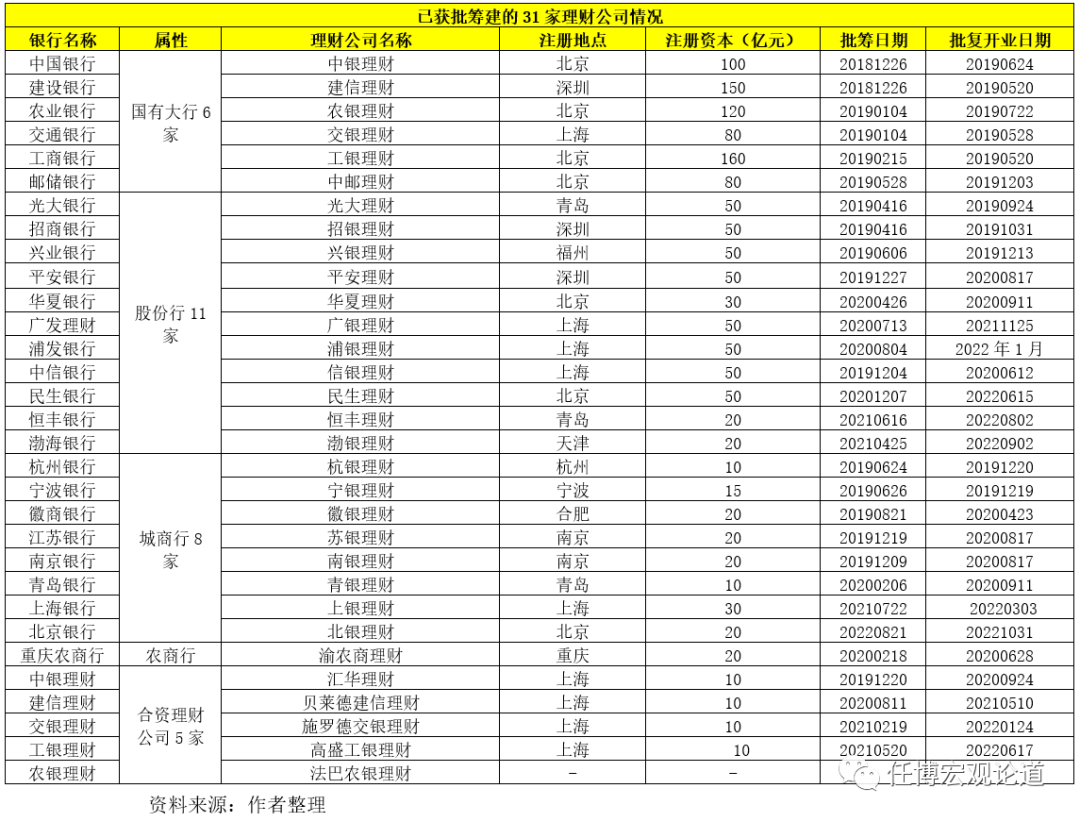 (二)已有31家理财公司获批(全国性银行17家、城商行8家、合资5家)