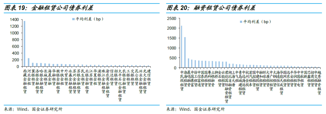 我们通过计算租赁公司利差水平判断其投资价值,计算利差的规则为租赁公司债券的中债估值收益率减去相同期限国开债收益率。