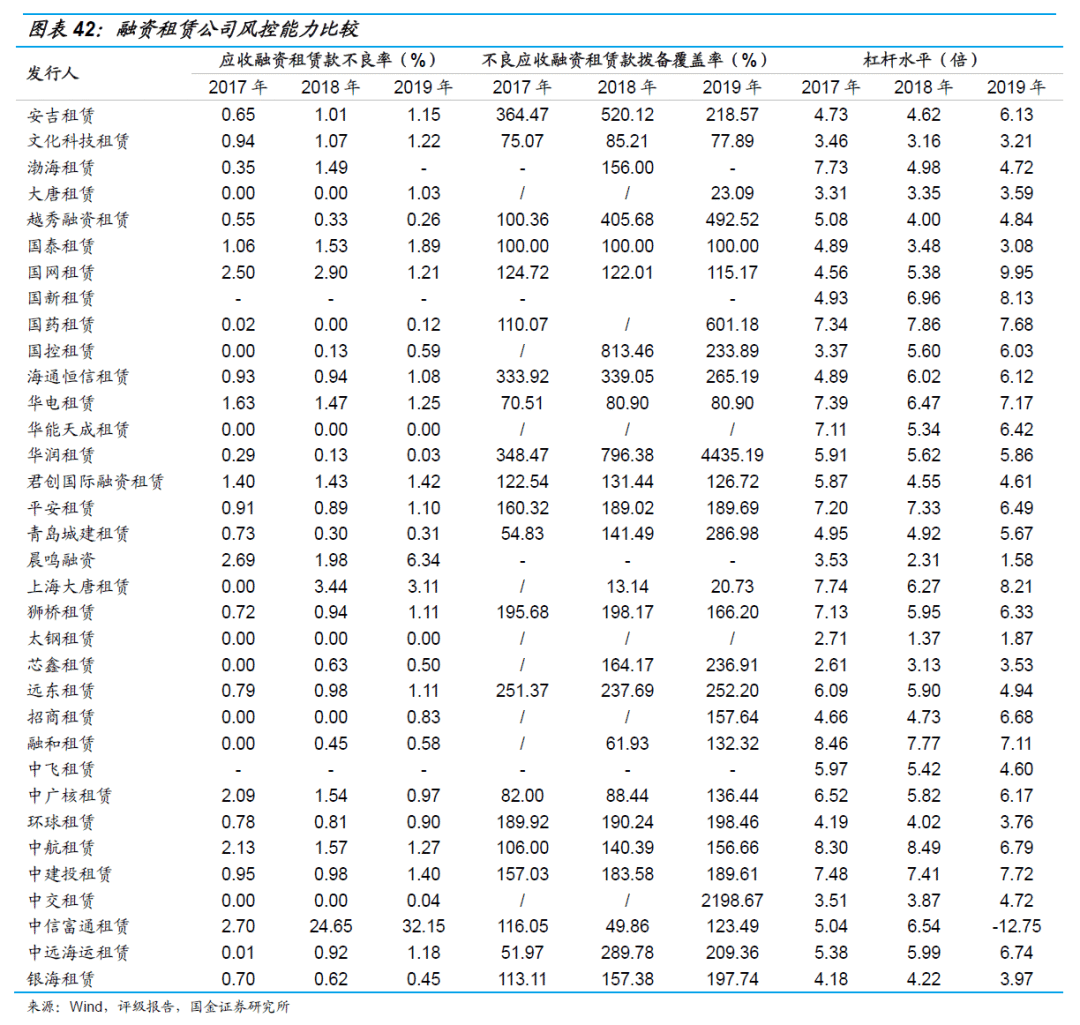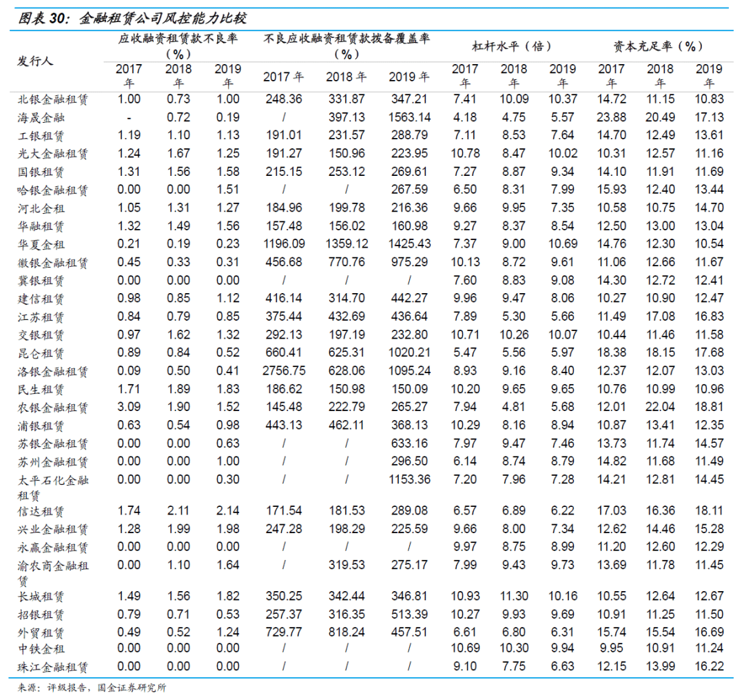 风险提示: 1)关注融资租赁监管政策的变化、行业变化对相关主体信用资质的不利影响;2)租赁公司信息披露不完全,口径不一致等指标数据问题。