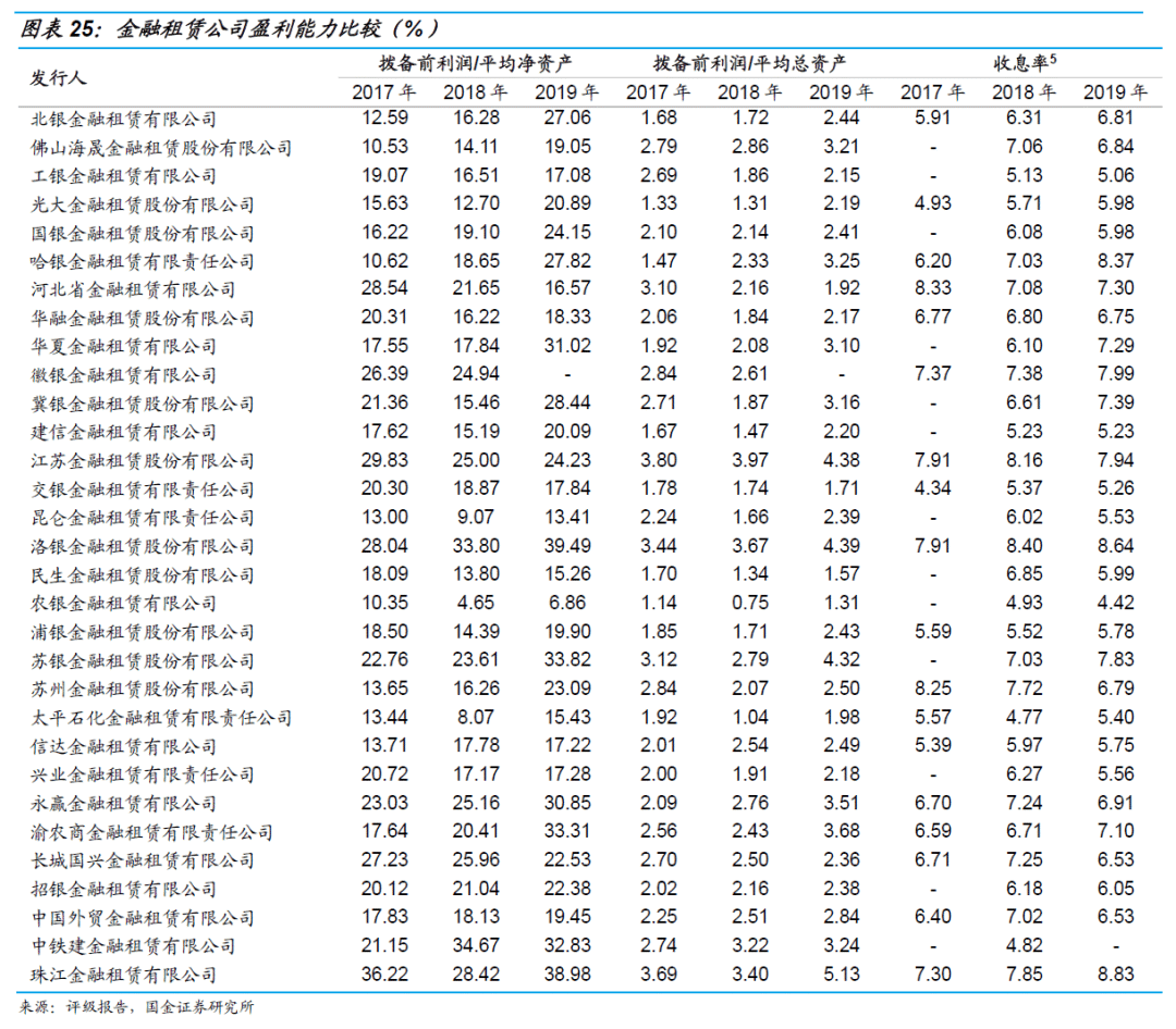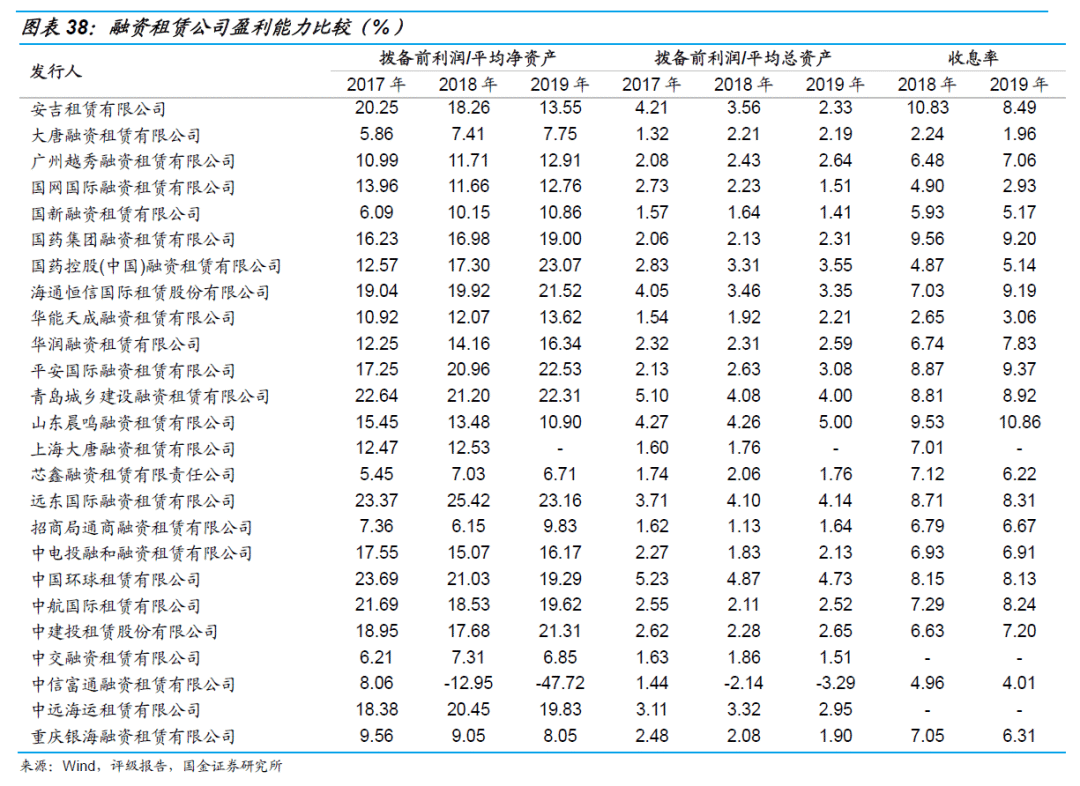 [7] 不包含2019年拨备前利润/平均净资产为负值的中信富通租赁、数据未披露的上海大唐租赁等共11家融资租赁发债主体。拨备前利润/平均总资产亦然。