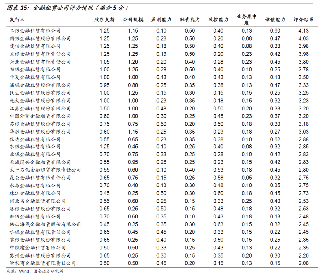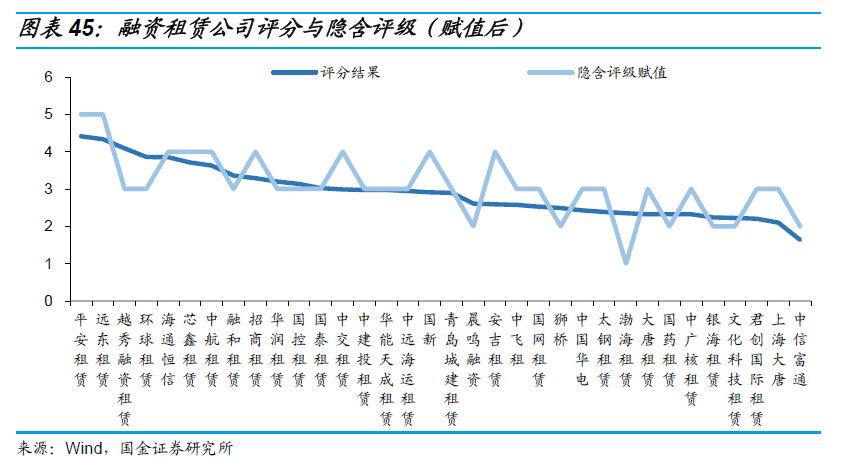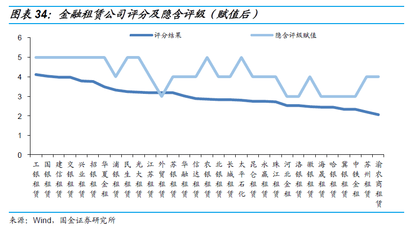 我们对金融租赁公司进行赋值打分,得到的结果如下: