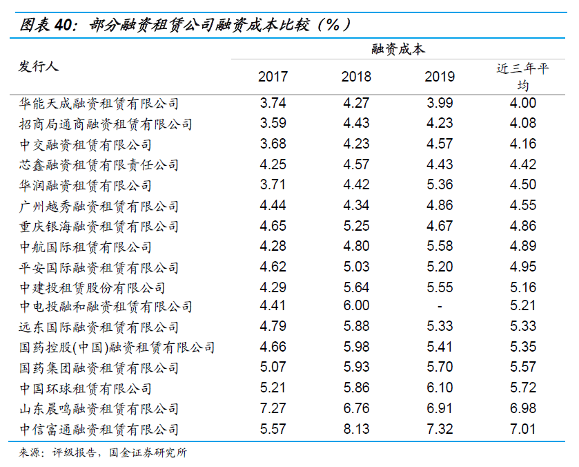 综合而言,在融资成本上,具有大型商业银行股东背景的银行系金融租赁公司更具有优势。