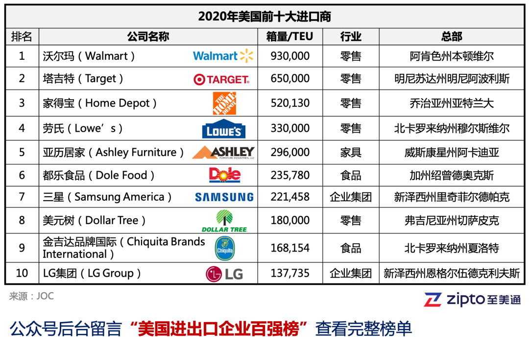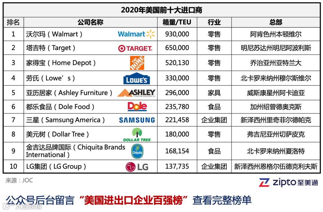 经济预测机构IHS Market发布了2020年美国进出口企业百强榜。揭示了在疫情影响下,美国企业进出口总量的变化。该榜单仅统计集装箱货物的实际所有人,不包含承运方、货代、第三方物流供应商、银行等机构。