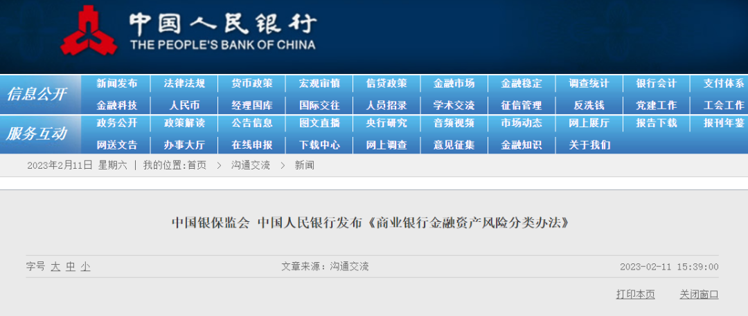 中国银保监会 中国人民银行发布《商业银行金融资产风险分类办法》