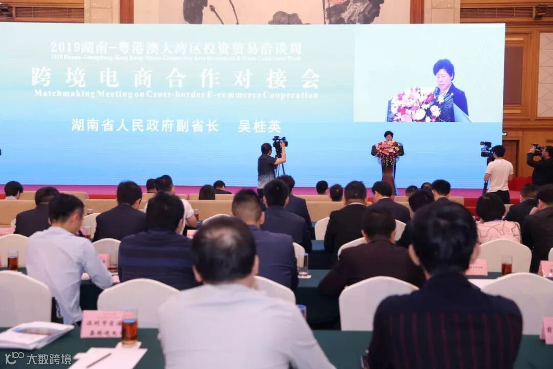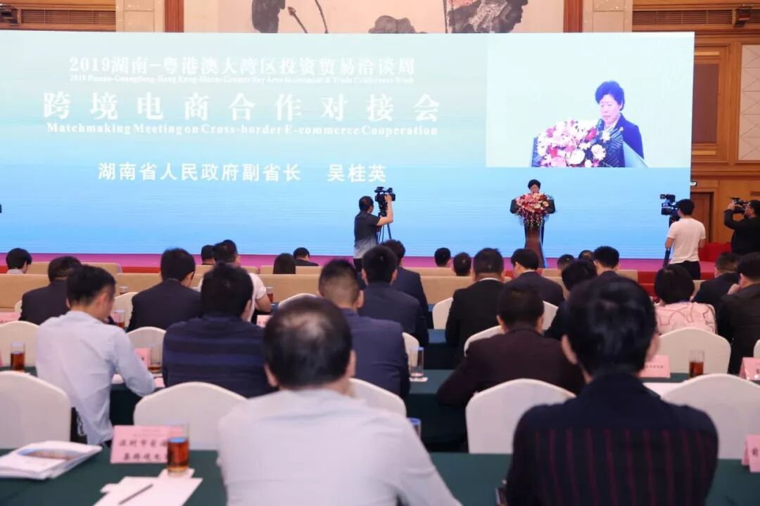 今日上午(4月16日),由长沙市人民政府、湖南省商务厅联合举办的湖南-粤港澳大湾区投资贸易洽谈周跨境电商合作对接会在深圳市五洲宾馆举行,这是长沙获批国家跨境电商综合试验区后在粤港澳地区首次举办的跨境电商专场活动。阿里巴巴、京东国际、网易考拉、ebay、唯品会、洋葱集团、盛世商潮、欧于美、中外运、安克、通拓、泽宝、飞特、至美通、棒谷、行云全球汇等100多家跨境电商企业参加。湖南省副省长吴桂英出席致辞,长沙市副市长邱继兴出席。