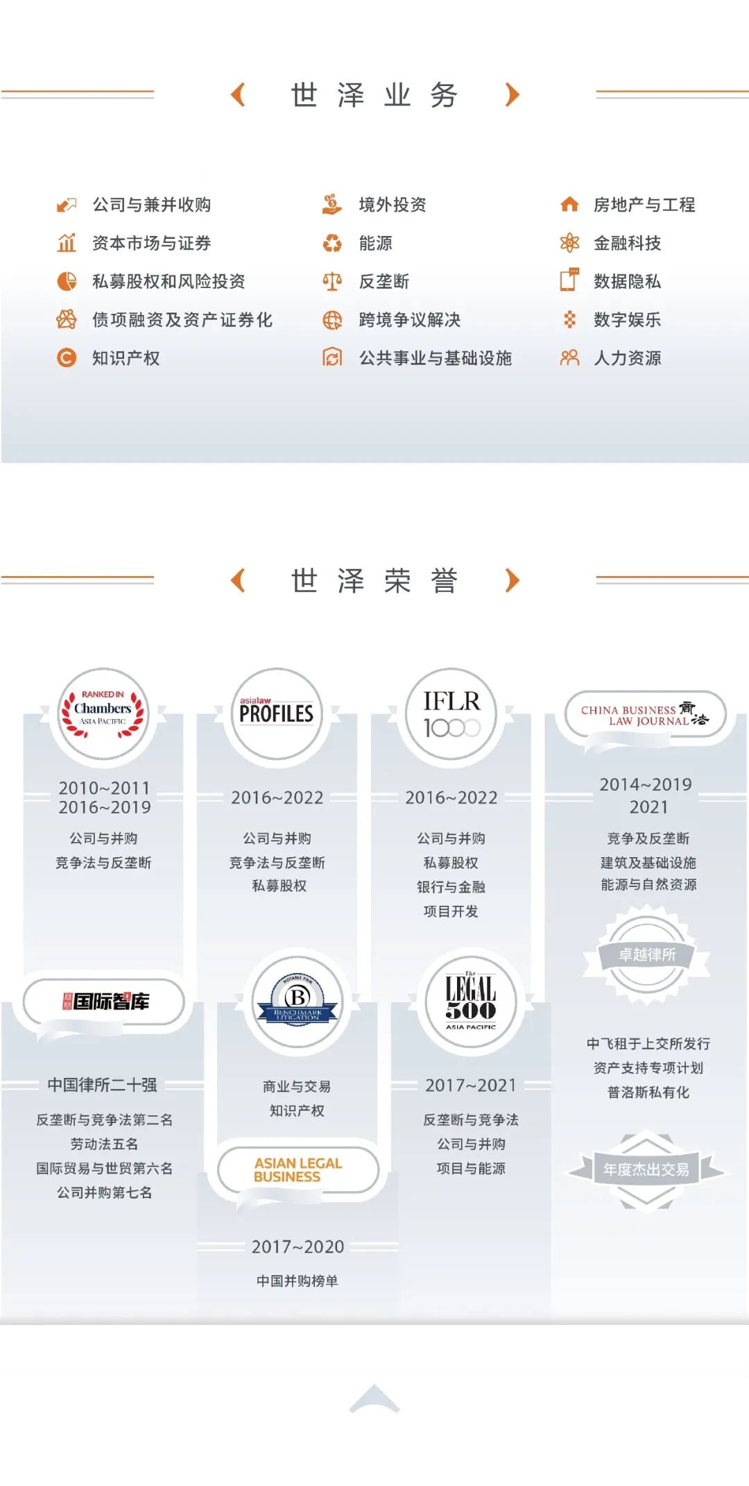 刘律师于2021年12月作为合伙人加入世泽。在此之前,刘律师为德恒上海律师事务所合伙人,并曾在锦天城律师事务所、方达律师事务所、环球律师事务所执业工作。刘律师于2012年至2016年担任强生医疗中国骨科和神经外科集团的高级法律顾问,并曾任职于其他500强跨国公司,积累了丰富的公司法务经验。