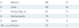 值得注意的是,墨西哥在这一榜单上排名第五,且是当季中间产品进口增长率最高的(27%),与2021年底相比,墨西哥在该榜单上前进了4位,凸显了其在制造业供应链中的活跃。