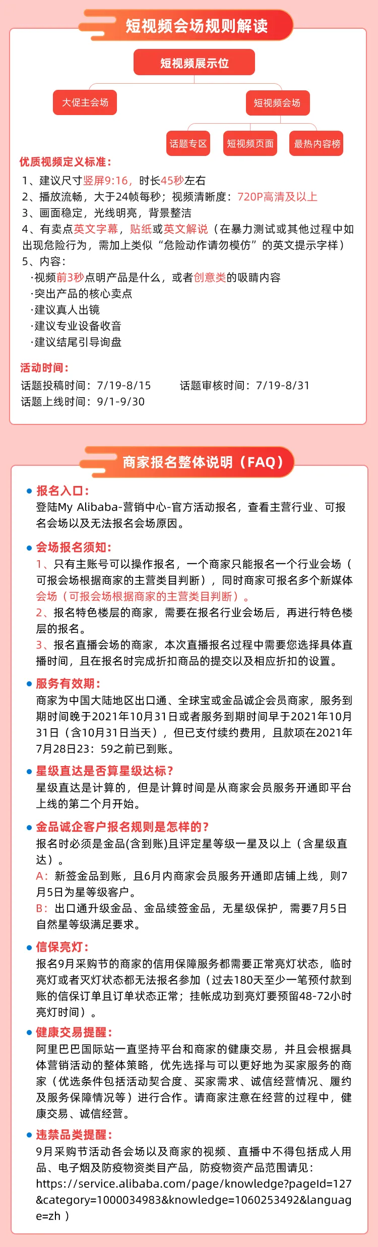 9月采购节是阿里巴巴国际站发起的全球大型采购活动,旨在紧扣“金九银十”的外贸采购高峰季,为全国中小企业打造 B 端大促的交易场景,为黑五、感恩节、圣诞等国外传统节日大促提前备货,促进商机。