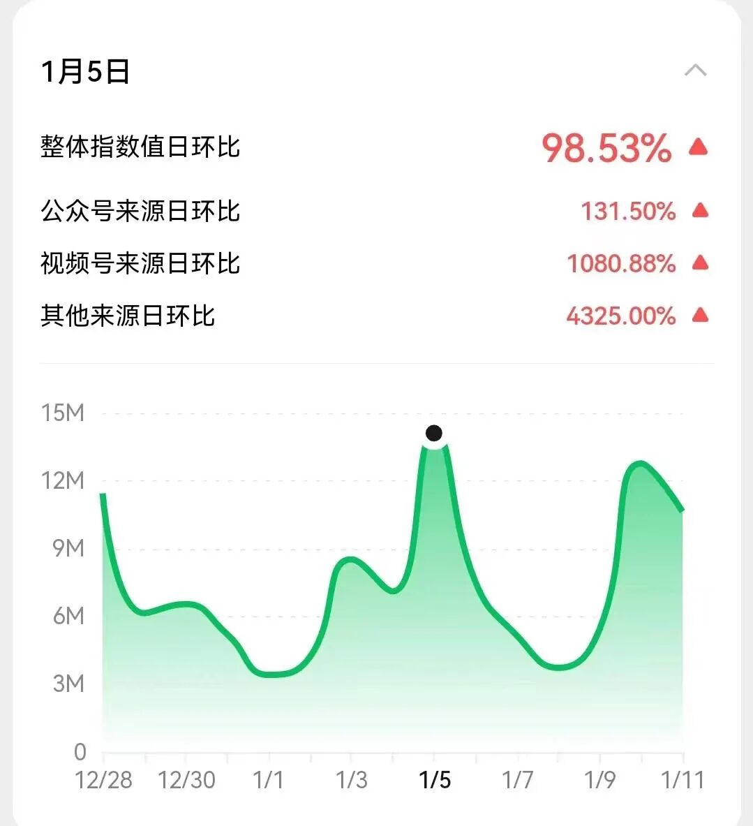 细致观察建行案例,我们发现1月5日“中国建设银行”一词的微信指数大涨,环比几乎翻番。正是当天,“中国建设银行”公号发布了2023年造福季活动启动的头条文章,瞬间引爆微信网民对该活动乃至对建行的关注,其中视频号和用户搜索、分享的其他来源增幅惊人。