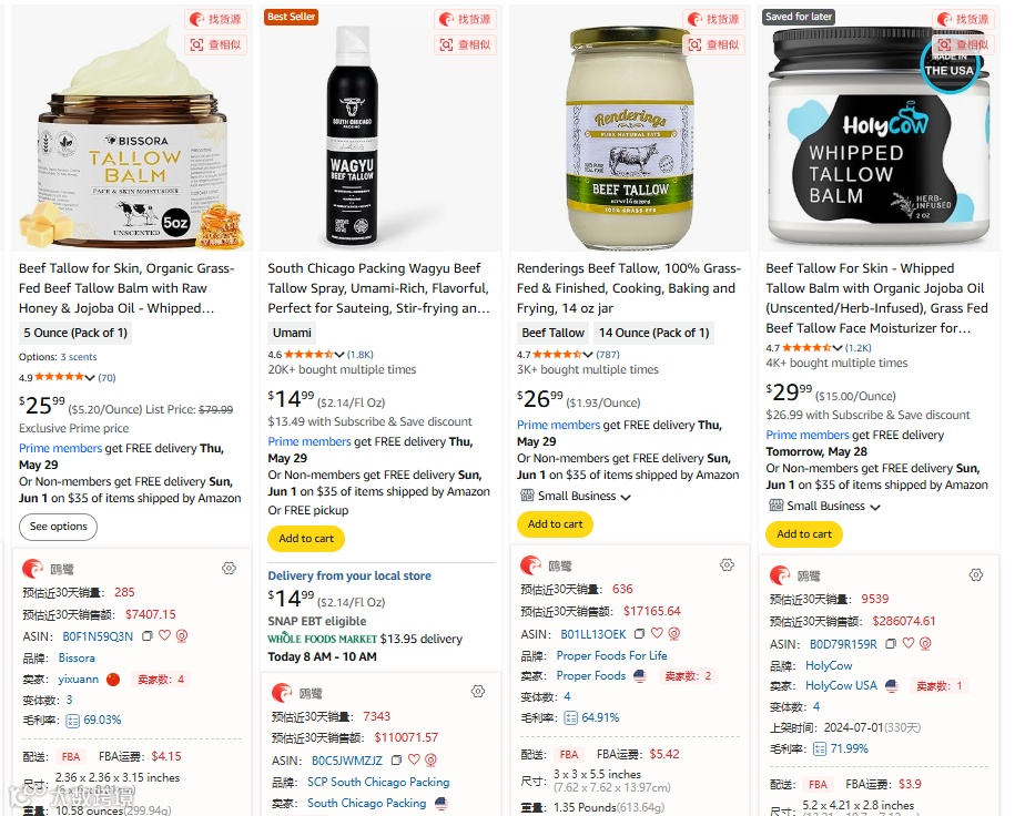牛脂:富含脂肪酸和天然油脂,深层补水和修复屏障。