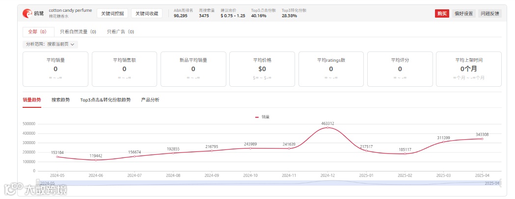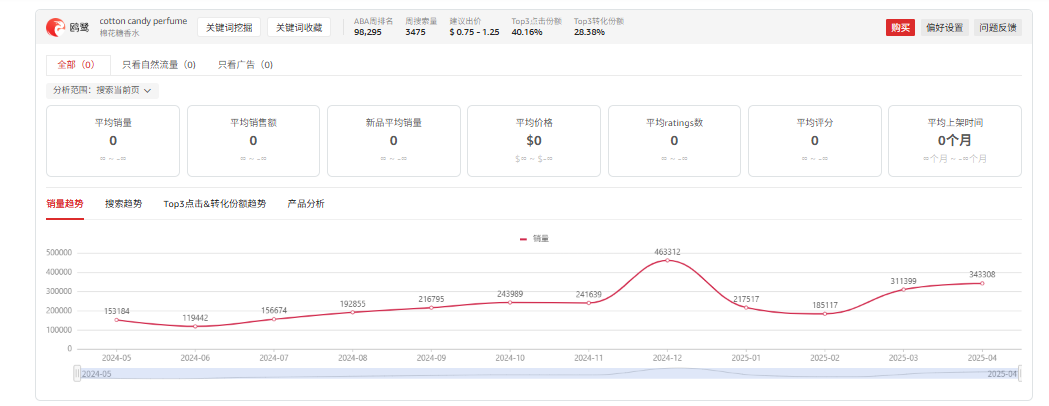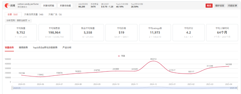 棉花糖香水需求稳定,自然流量占比超90%,新品月均销量5558件,均价$19,适合主攻甜美平价市场