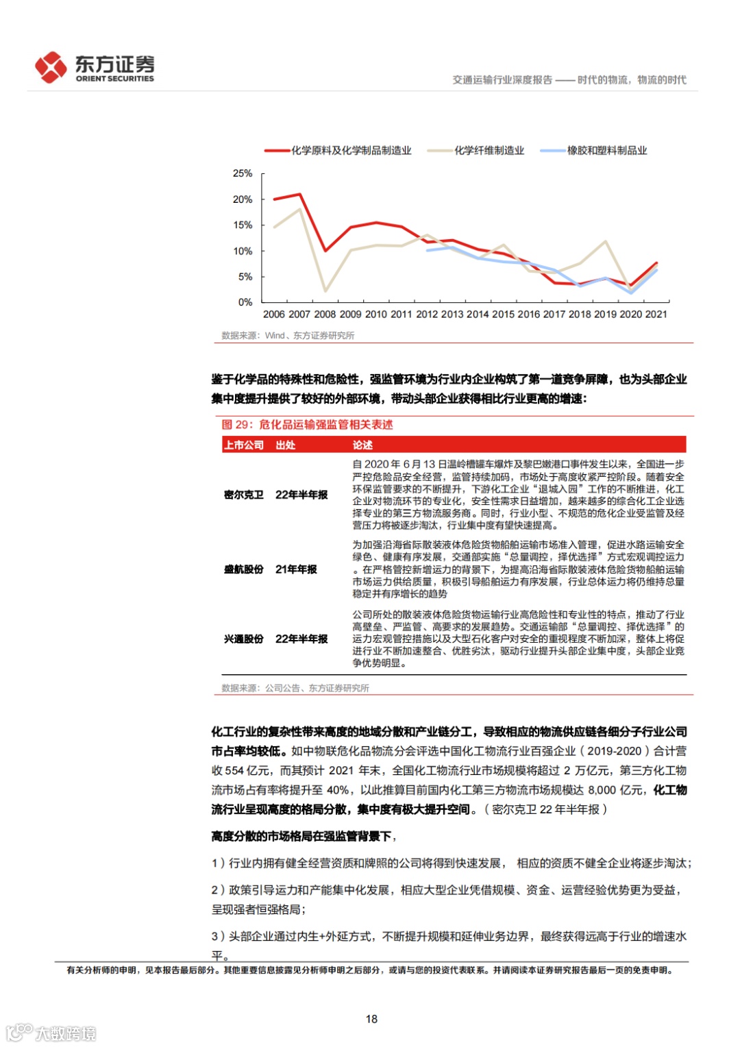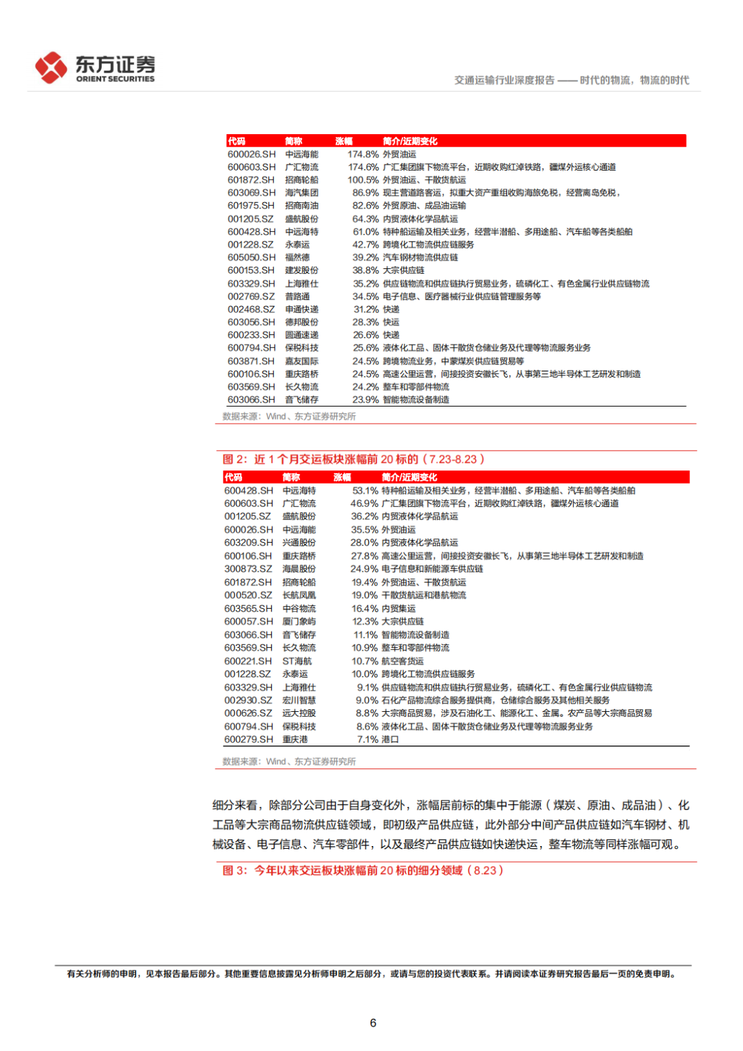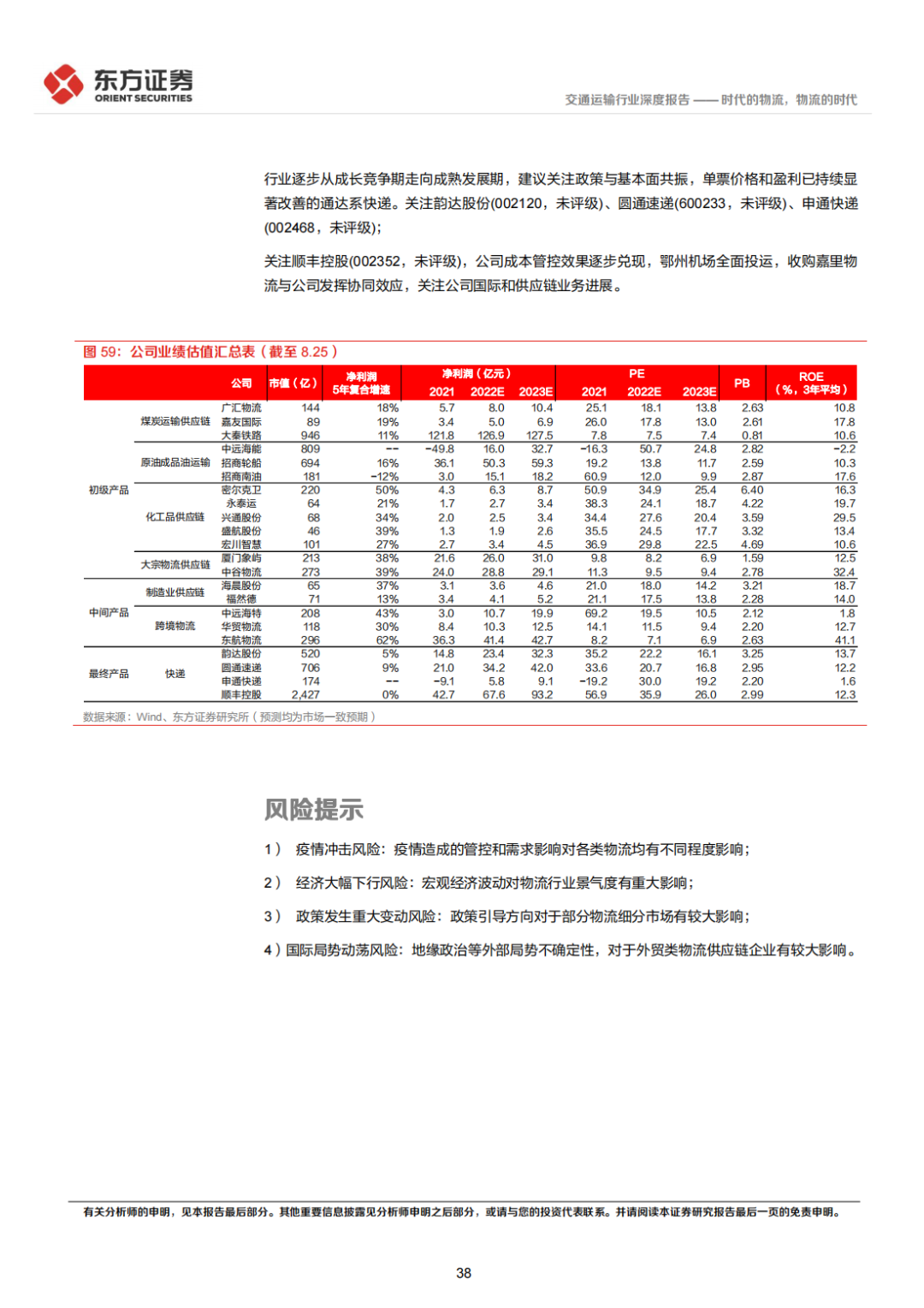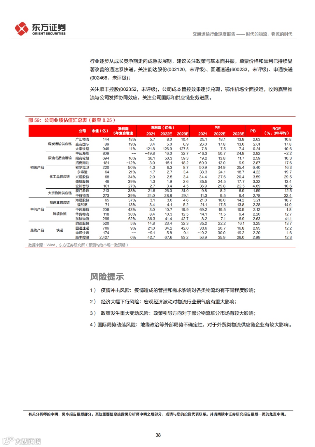 初级产品物流:关键词——能源安全和产业升级。1)煤炭运输/供应链:能源安全下的煤炭运输链条重塑;2)原油/成品油运输:国际局势“不确定”下的“确定性”;3)化工品供应链:监管趋严、产业升级背景下的化工供应链企业成长机遇;4)大宗供应链:产业升级下的头部企业价值创造之路。在当前特殊的历史时期下,我们认为能够服务于能源安全或产业升级的初级产品物流供应链企业,或将得到更多的发展机遇,最终将逐步脱离或弱化初级产品本身的周期属性,进而获得更好的业绩回报和估值溢价。