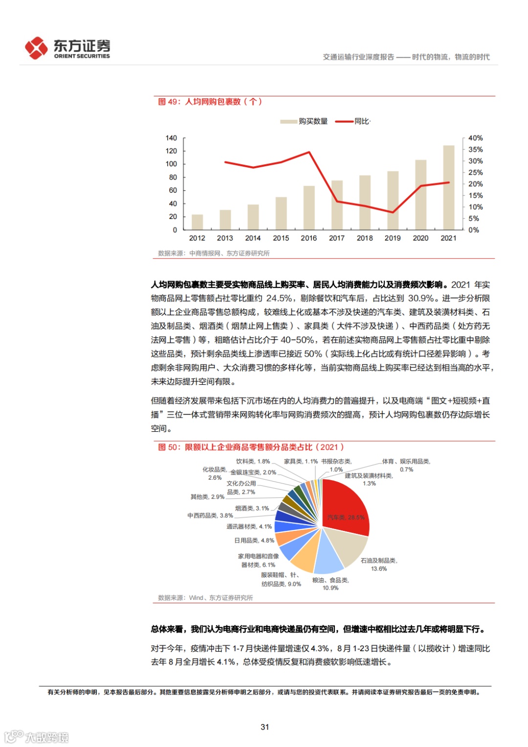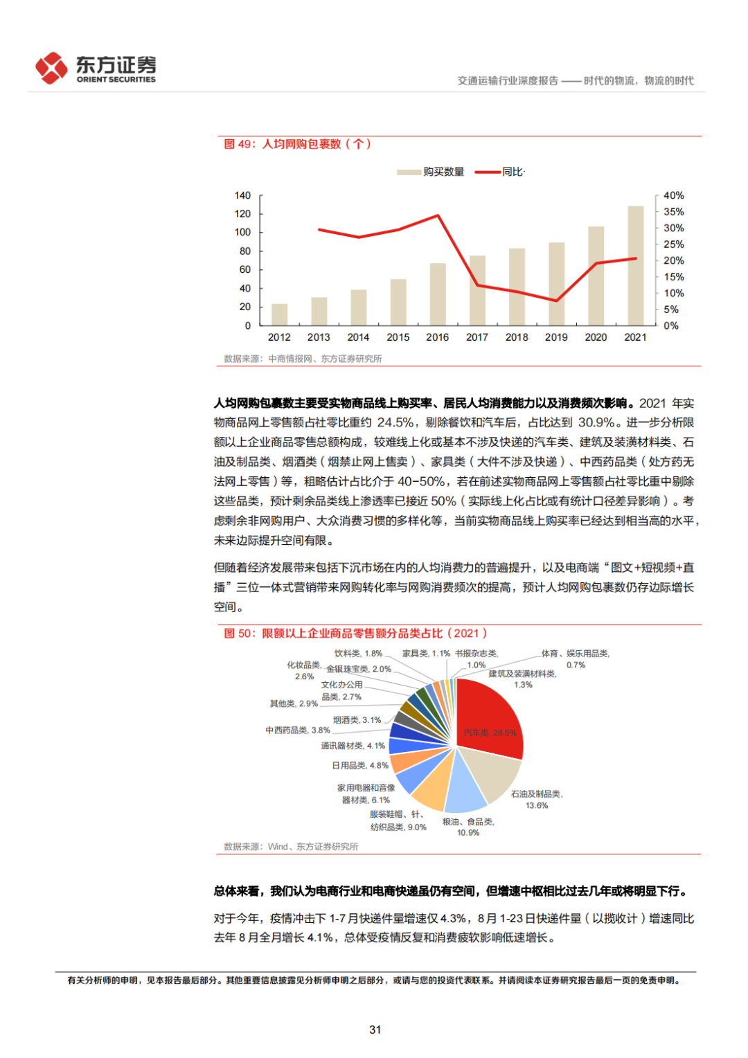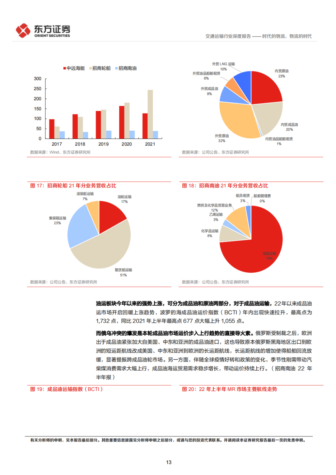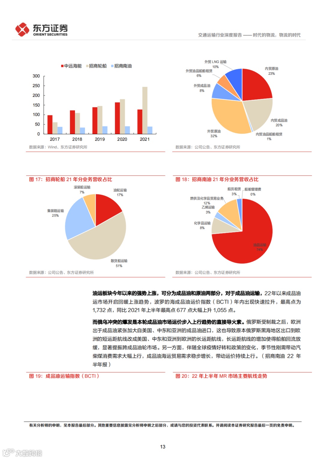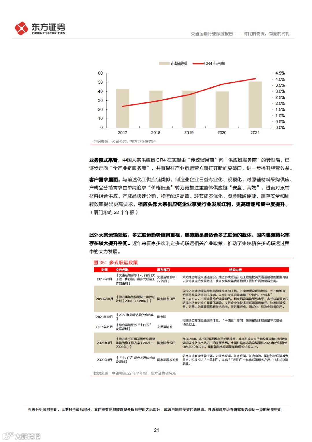 初级产品物流:关键词——能源安全和产业升级。1)煤炭运输/供应链:能源安全下的煤炭运输链条重塑;2)原油/成品油运输:国际局势“不确定”下的“确定性”;3)化工品供应链:监管趋严、产业升级背景下的化工供应链企业成长机遇;4)大宗供应链:产业升级下的头部企业价值创造之路。在当前特殊的历史时期下,我们认为能够服务于能源安全或产业升级的初级产品物流供应链企业,或将得到更多的发展机遇,最终将逐步脱离或弱化初级产品本身的周期属性,进而获得更好的业绩回报和估值溢价。