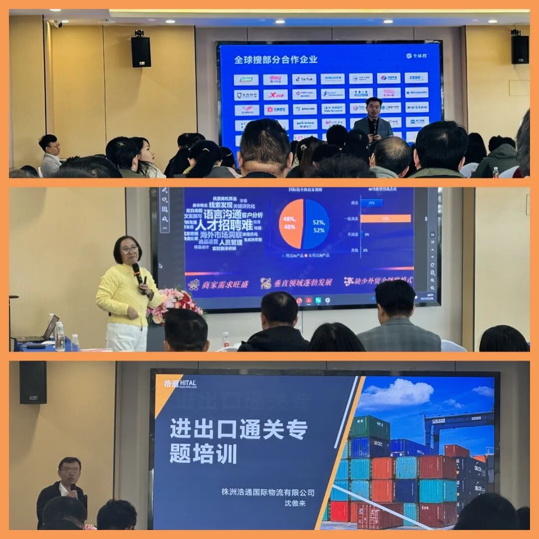创贸集团渠道总监姚昊带来精彩分享,他围绕AI助力外贸企业高效获客、AI破界搜索,社媒领航出海、外贸企业如何抓住海外社媒流量红利等方面进行详介绍,为企业开拓市场提供了新思路;阿里巴巴国际站KOL商家及金牌讲师杨会,以“挑战与机遇”为主题,剖析了当下纷繁复杂的国际形势,讲解企业如何借助阿里巴巴国际站这一平台,把握外贸红利,实现业务增长;此外,株洲海关特约监督员沈傲来开展了出口企业报关税务等相关培训,助力企业合规运营。