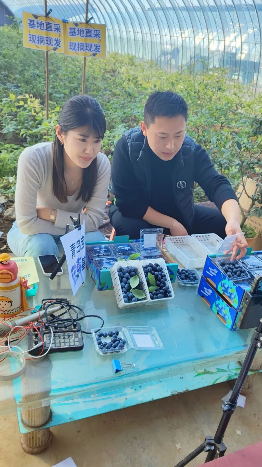 电商公司通过抖音直播平台向大家展示蓝莓基地直采直发直供全过程,让消费者能更加直观挑选。