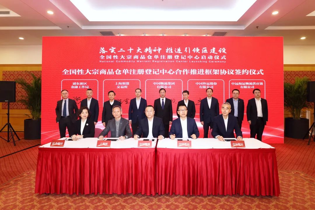 11月23日,全国性大宗商品仓单注册登记中心(以下简称全仓登)启动仪式在上海浦东新区办公中心举行。上海市委常委、浦东新区区委书记朱芝松,中国物流集团党委书记、董事长李洪凤,上海市政府副秘书长、浦东新区区长杭迎伟等出席启动仪式。