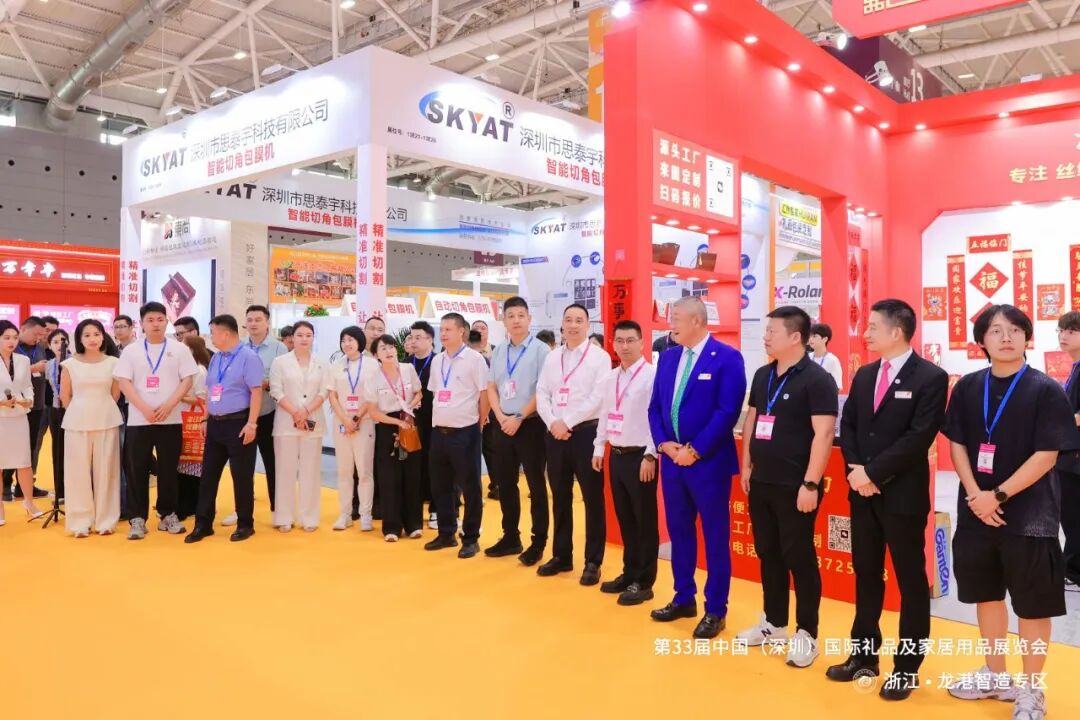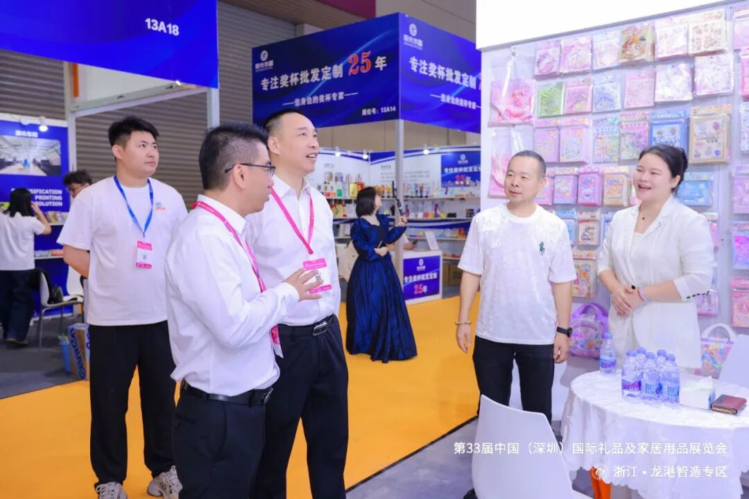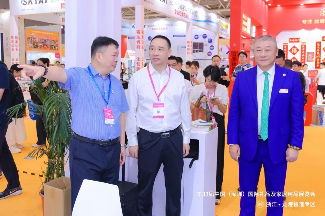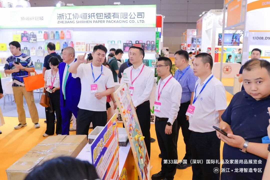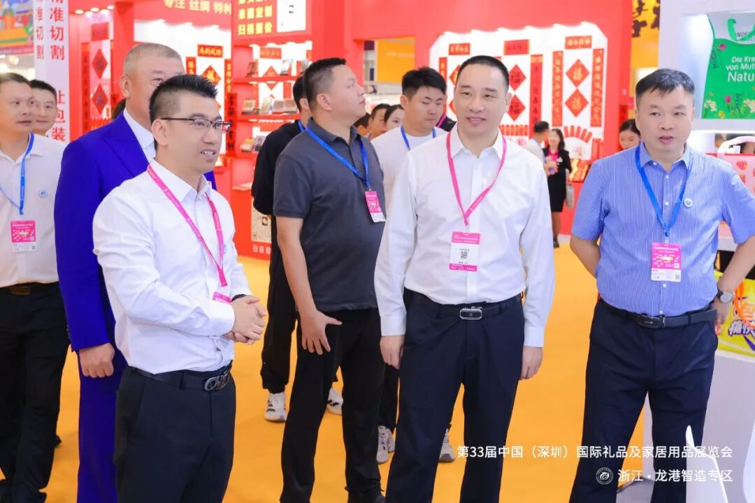 上午 10:50,龙港市委常委黄振国、龙港市经济发展局党组成员赵旭佼亲临现场,为专区启幕,共同见证第 33 届中国(深圳)国际礼品及家居用品展览会浙江・龙港智造专区 的盛大开幕。彰显了当地政府对本土企业 “走出去” 发展的鼎力支持。