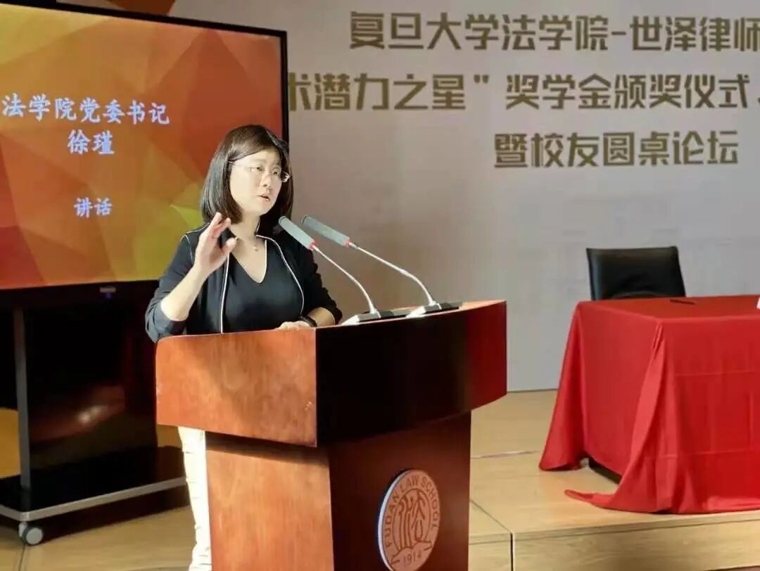 法学院党委书记徐瑾对校友积极贡献学院发展建设表示诚挚感谢,对校友单位重视学术育人、助力学术研究的理念表示高度赞同。她从当前复旦大学和法学院的积极向好发展态势出发,以国际交流项目、模拟法庭、交叉学科培养等举措为例,向校友和师生们阐释了法学院的国际化、交叉学科、实践性的办学优势与特色。徐瑾强调,学术水平是一流学科的核心竞争力,学院始终坚持学术立院之本,并期待学院与校友共同配合,在未来探索更多的可能性。