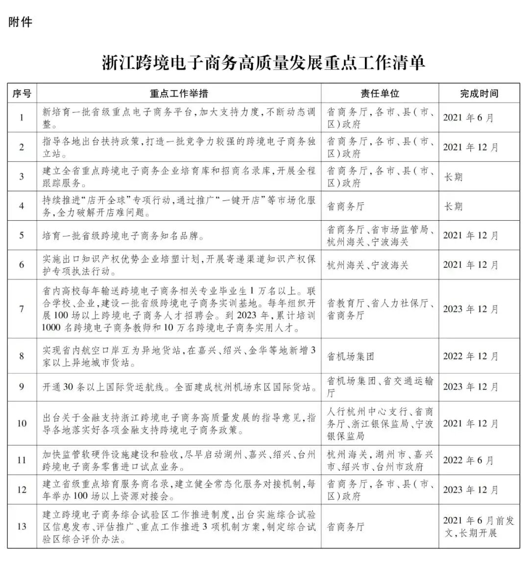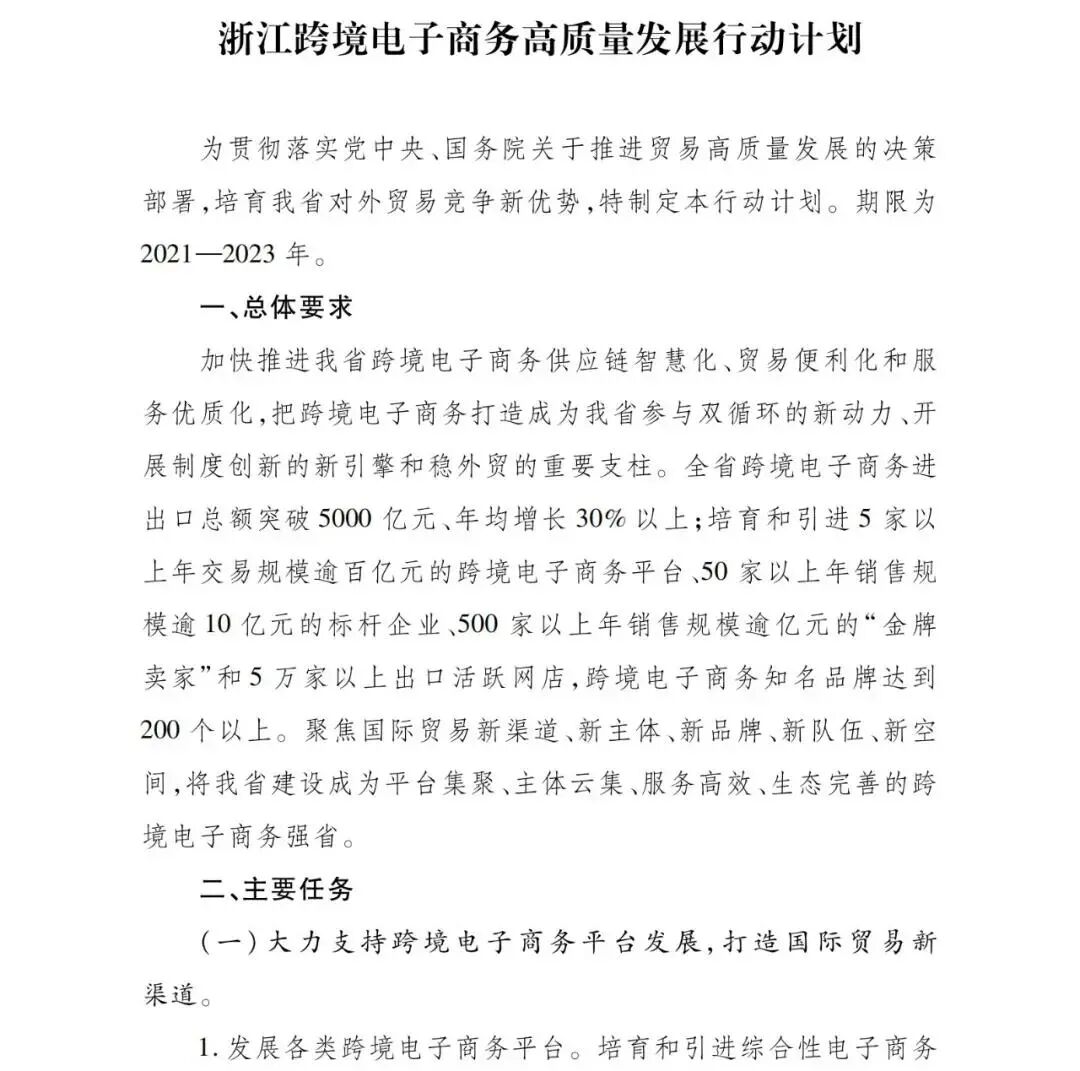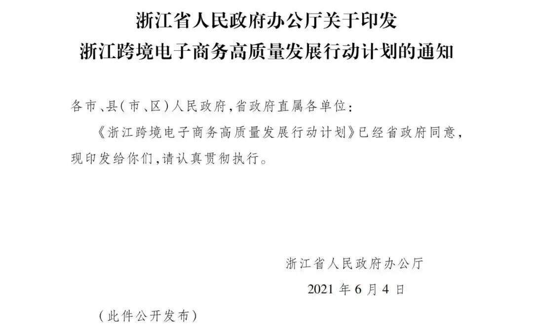 浙江省人民政府办公厅关于印发浙江跨境电子商务高质量发展行动计划的通知