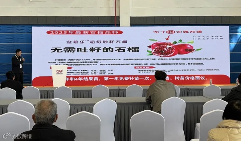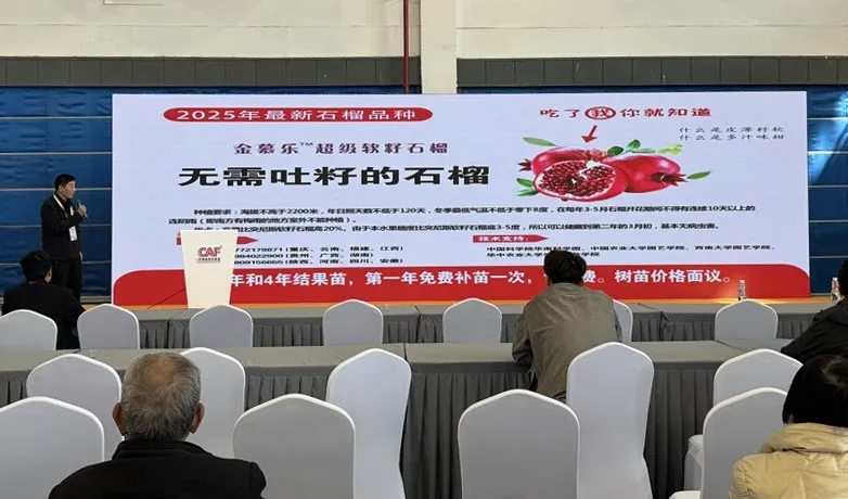 来自中国科学院华南植物园的桂晓东教授带来的金慕乐超级软籽石榴种苗让现场观众眼前一亮。该种苗引自伊朗,凝聚科研人员多年心血。与传统石榴相比,金慕乐超级软籽石榴优势显著,籽更软更小,果实个头更大,甜度适中,富含多种维生素与抗氧化物质,营养价值远超普通品种。桂晓东教授介绍,其产量比突尼斯软籽石榴高出20%,未来有望成为果农增收致富的“金疙瘩”,满足市场对高品质水果的需求,丰富水果市场品类。