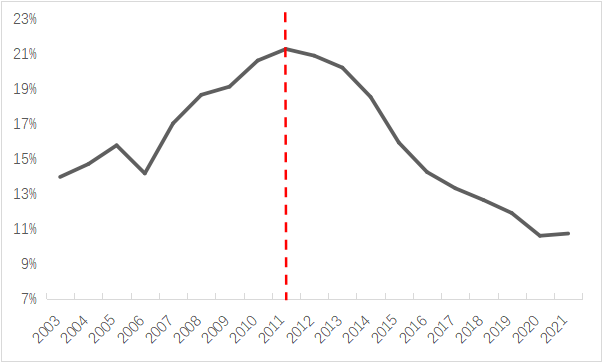 图1 2003-2021年我国A股上市银行ROE变化趋势