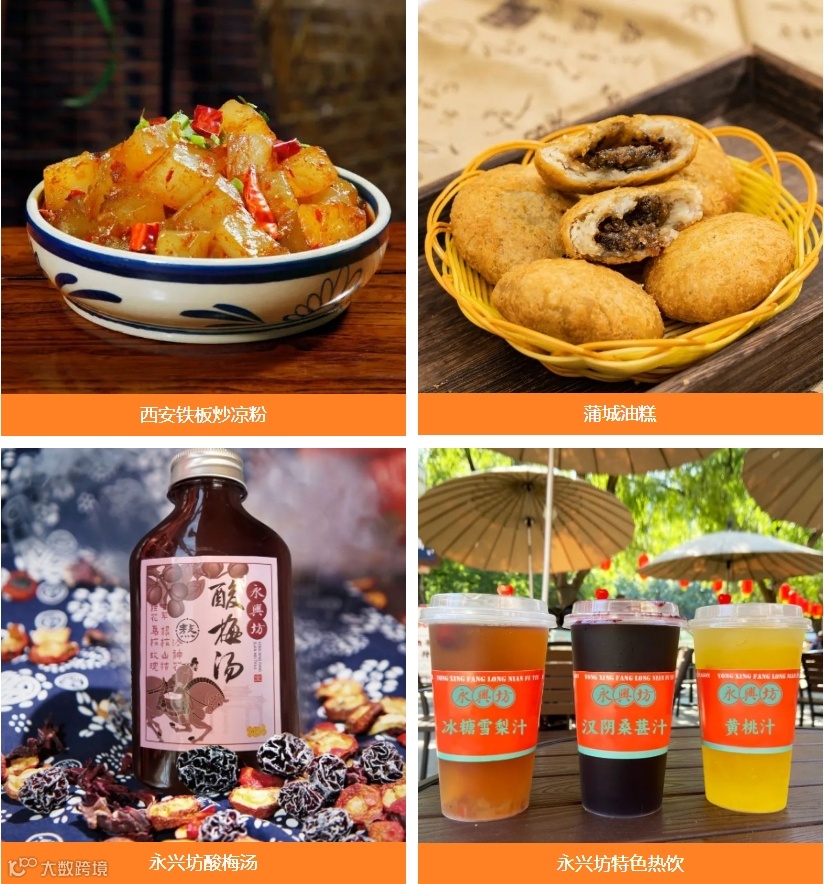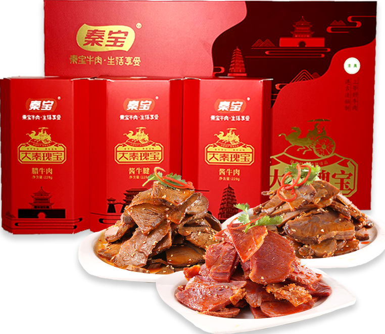秦宝牛肉、圣桑果汁等