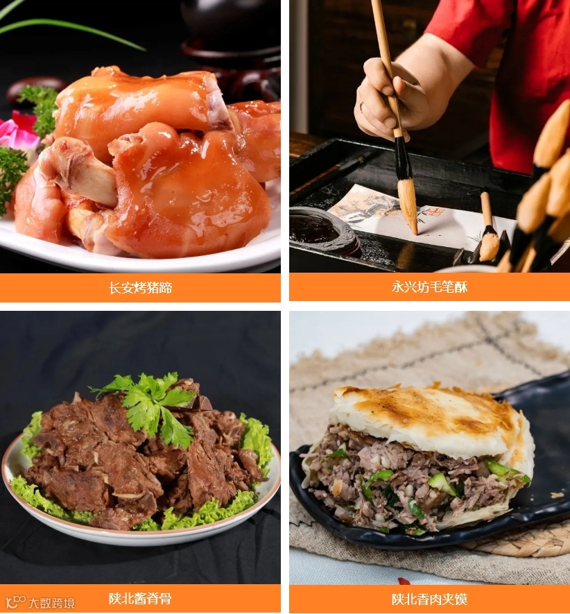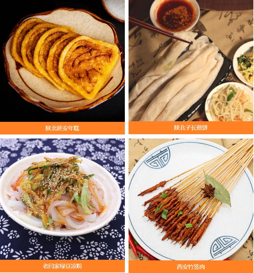毛笔酥、肉夹馍、炒凉粉等