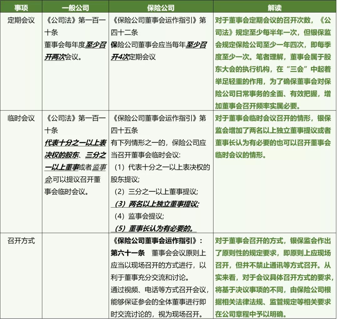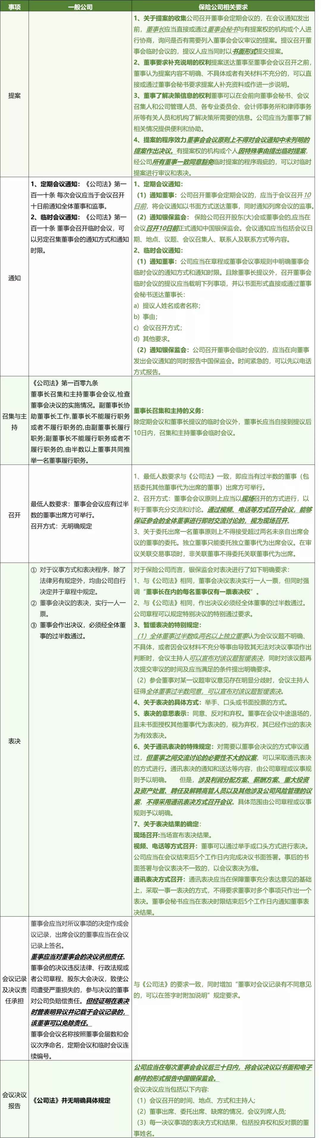 对于董事会整个召开流程而言,银保监会对保险公司的要求也是更加细致,各保险公司应严格根据该等规定流程拟定章程及董事会议事规则,且实务中应按相关流程要求召开董事会。