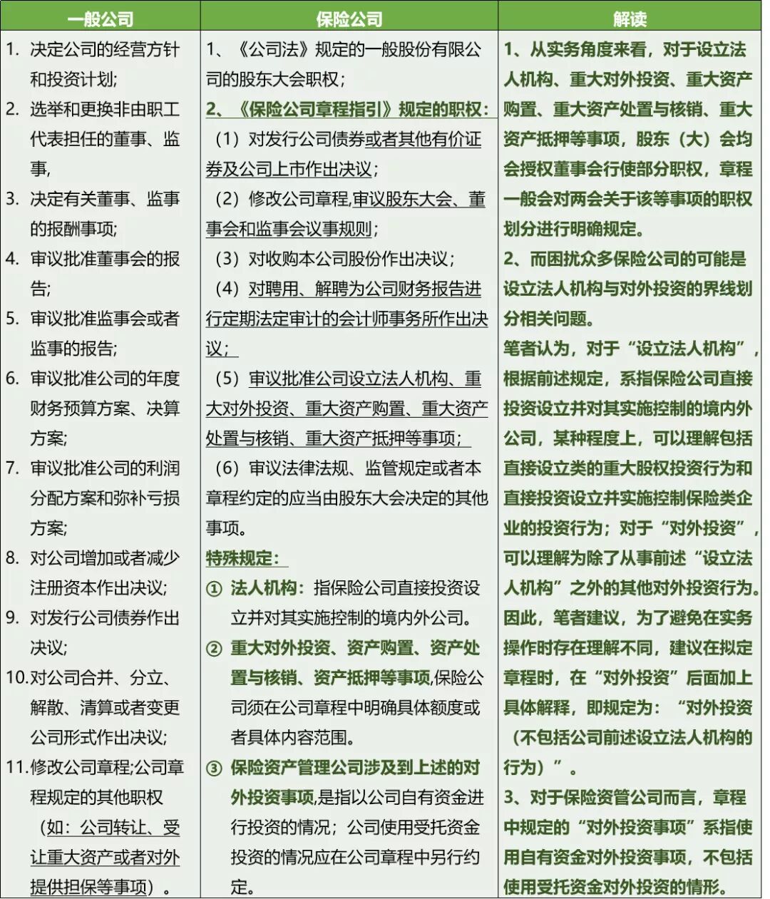股东大会是最高权力机构,就保险公司股东大会的职权而言,在《公司法》基础之上,银保监会作出了更加细致的规定要求: