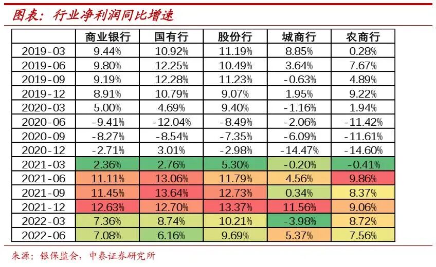 四、2022上半年商业银行净利润同比增7.08%,增速较1季度有小幅放缓,有去年同期较高基数的影响,其中城商行板块同比增速转正、较为亮眼。国有行、股份行、农商行分别同比增6.2%、9.7%、7.6%,其中国有行净利润增速有2.6个百分点的放缓,预计主要是息差放缓的影响。城商行板块上半年净利润同比增5.4%,预计板块内部分化明显,从目前已披露中报的上市城商行净利润表现看,江浙地区上市城商行上半年净利润同比增速都在20%以上。