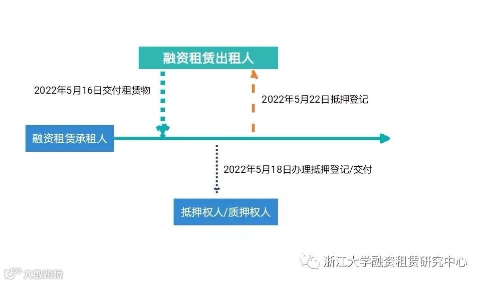 如上图所示,融资租赁的承租人在2022年5月16日与融资租赁的出租人签订《融资租赁合同》约定,承租出租人名下租赁物,并在租赁物交付的10日宽限期内也即2022年5月22日进行了担保登记。但是如租赁物交付至承租人后,承租人在2022年5月18日(此时,租赁物尚未向出租人办理担保登记)为融资将租赁物抵押并办理完毕登记给抵押权利人或者以质押方式交付给质押权人。此时若严格按照登记在先、受偿在先的受偿次序规则,将来对租赁物的变价款受偿时,动产抵押权利人或者质押权人优先于融资租赁的出租人。这样势必也会影响融资租赁承租人进行融资生产的积极性。因此,依据《民法典》第416条购买价款抵押的超级优先权受偿规则,融资租赁出租人的权利优先于动产抵押权人与质押权人的权利。