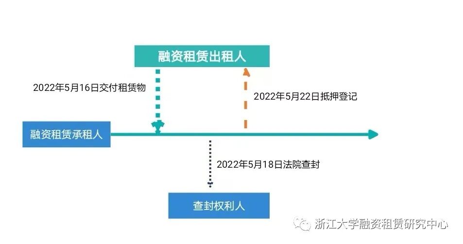 如上图所示,融资租赁的承租人在2022年5月16日与融资租赁的出租人签订《融资租赁合同》约定,承租出租人名下租赁物,并在租赁物交付的10日宽限期内也即2022年5月22日进行了担保登记。但是如租赁物交付至承租人后,承租人在2022年5月18日(此时,租赁物尚未向出租人办理担保登记)因负担债务被查封权利人通过法院进行了查封。将来若对查封的租赁物进行变价处置的,融资租赁出租人与查封权利人的权利谁优先,也是需要明确的。因此,依据《民法典》第416条购买价款抵押的超级优先权受偿规则,融资租赁出租人的权利优先于查封权利人的权利。