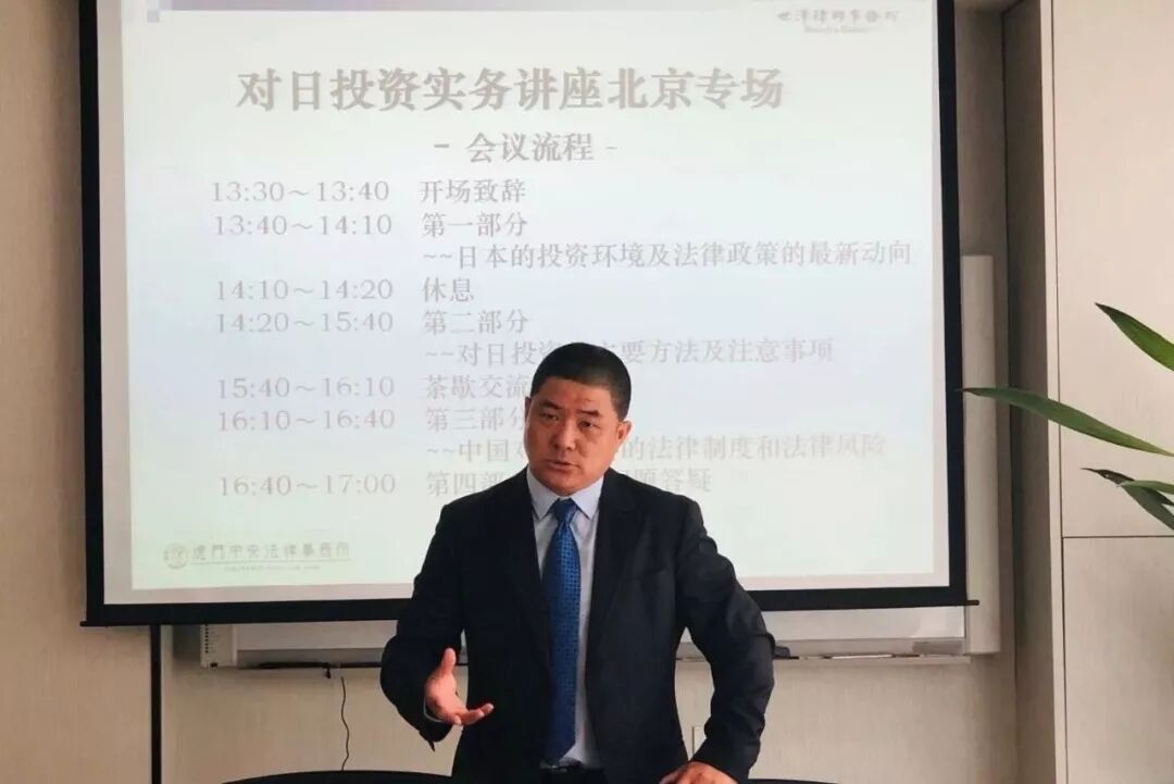 7月25日成功举办的对日投资实务讲座北京专场,将虎门中央法律事务所 世泽外国法事务律师事务所(外国法共同事业) “2019年对日投资巡回讲座活动”推向了高潮。此次活动是继5月23日上海专场、7月23日广州专场受到广泛好评后,应广大客户的需求,在本年度举办的第三场专题讲座活动。