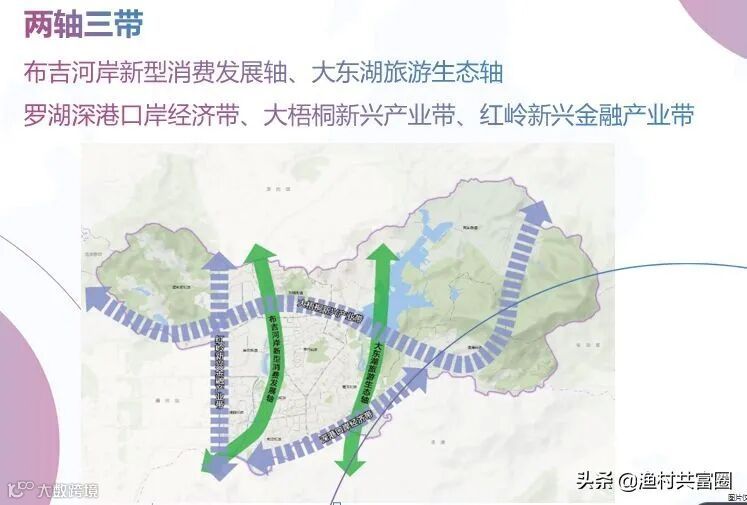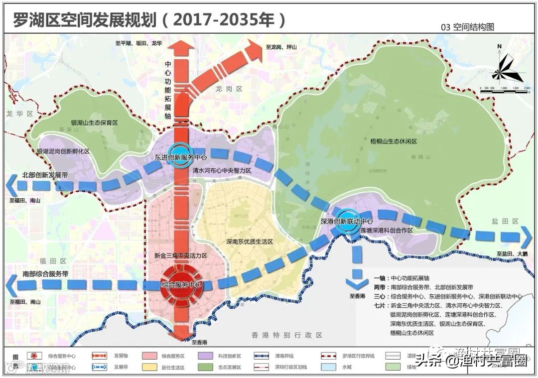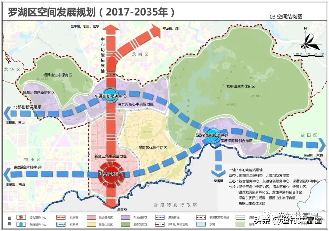 罗湖提出“一轴·两带·三心”的结构,划定七大功能板块。