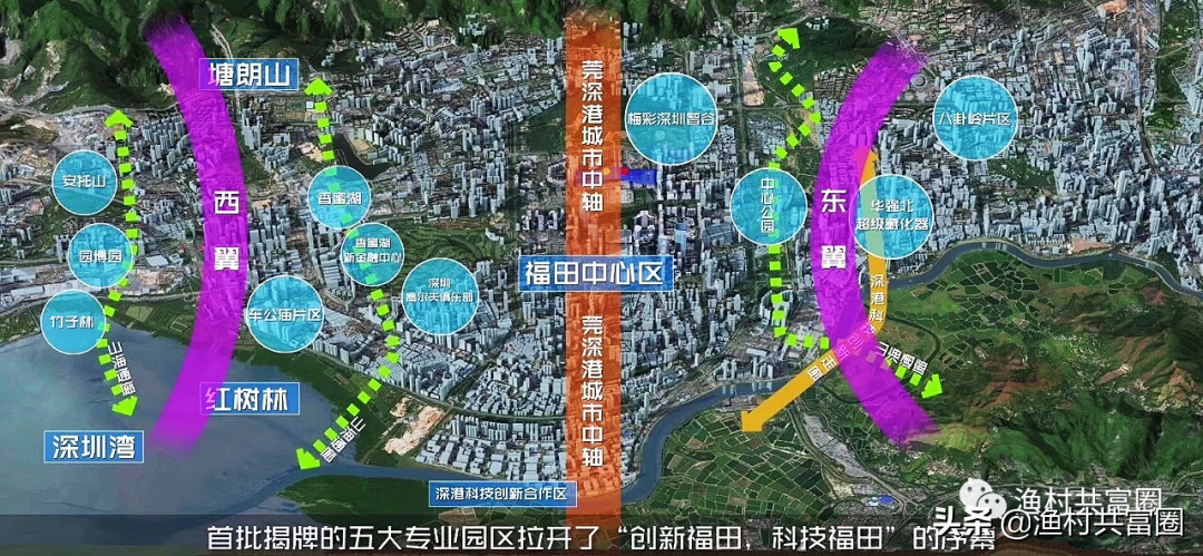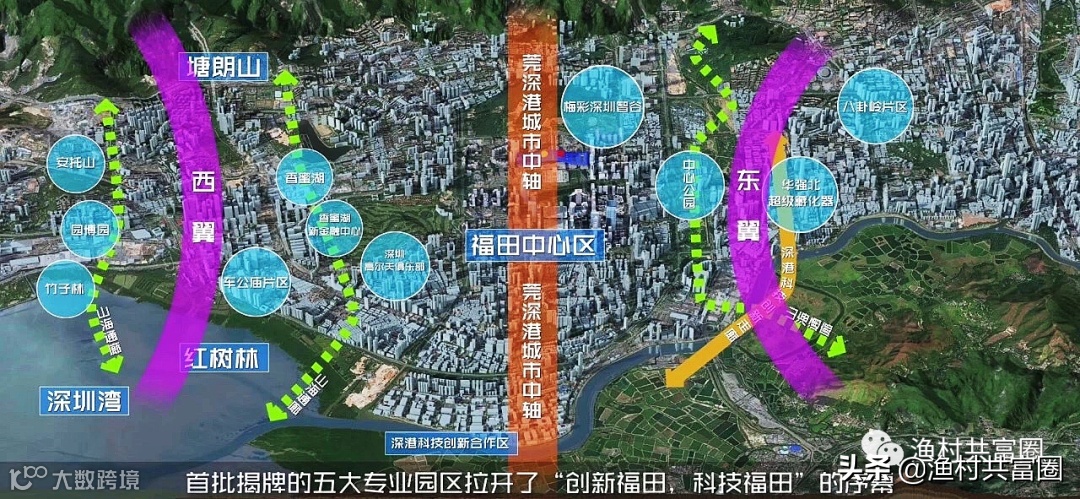 一条在“东翼”,通过“南华村、赤尾村”棚改,打通合作区与华强南、华强北的连接,构建一条深港科技创新走廊;