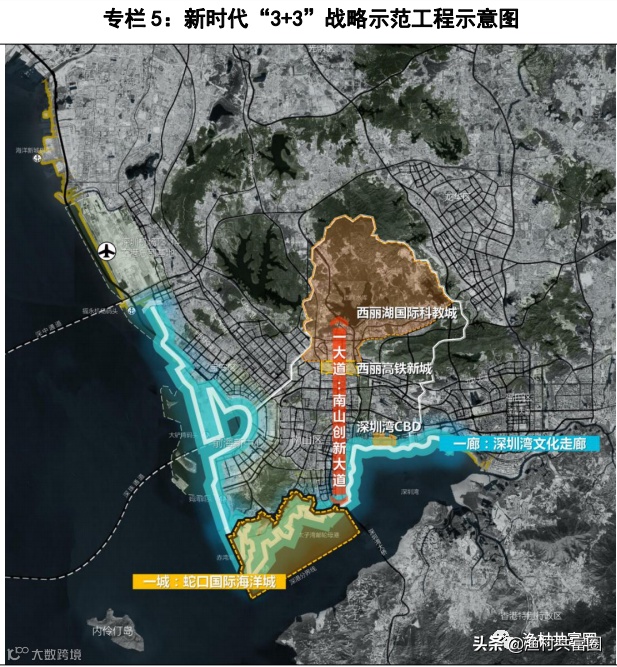 一带:湾区总部经济带,依托深圳湾、蛇口和前海等片区。