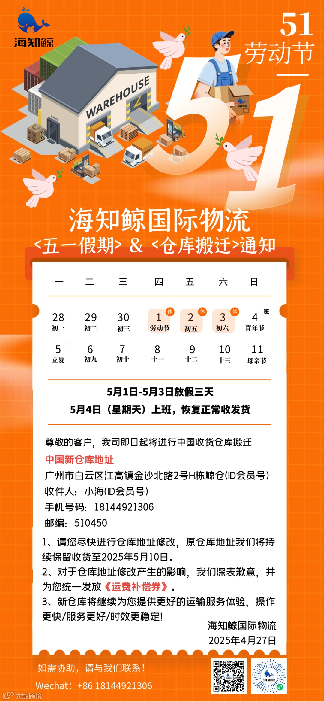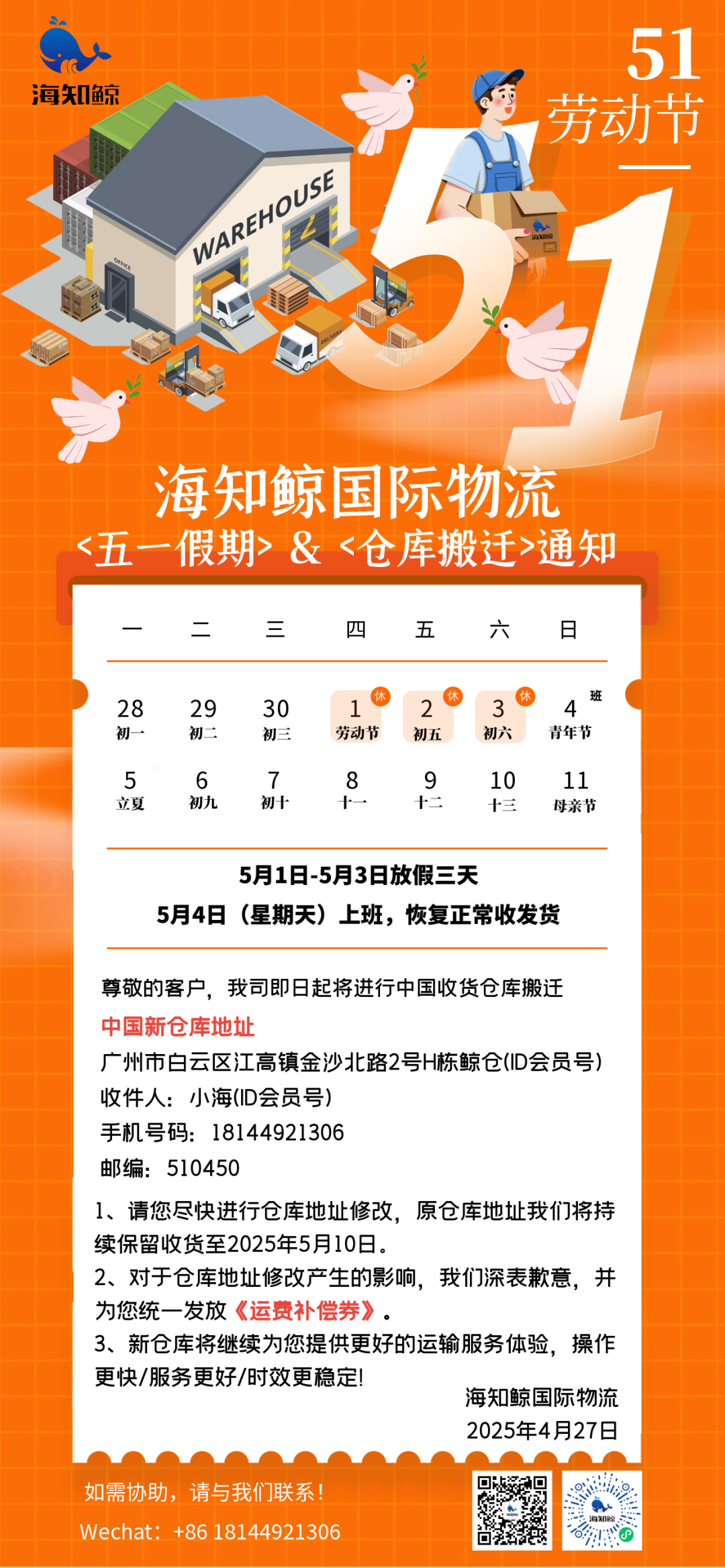 导读:5月1日-5月3日放假三天!中国仓库收货地址已更新,请及时修改!运费补偿券,注册用户即享有!