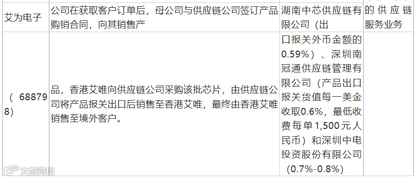 (2)模式二:境内生产公司对进口原材料采购环节的供应链服务业务 公司主要采购平台为香港佰维,主要生产基地位于中国境内,因此公司在生产过程中需要将原材料从香港佰维进口至中国境内进行生产加工。因货物进口涉及到物流、仓储、报关、税费缴纳等环节,有专业的供应链公司提供相应的服务。
