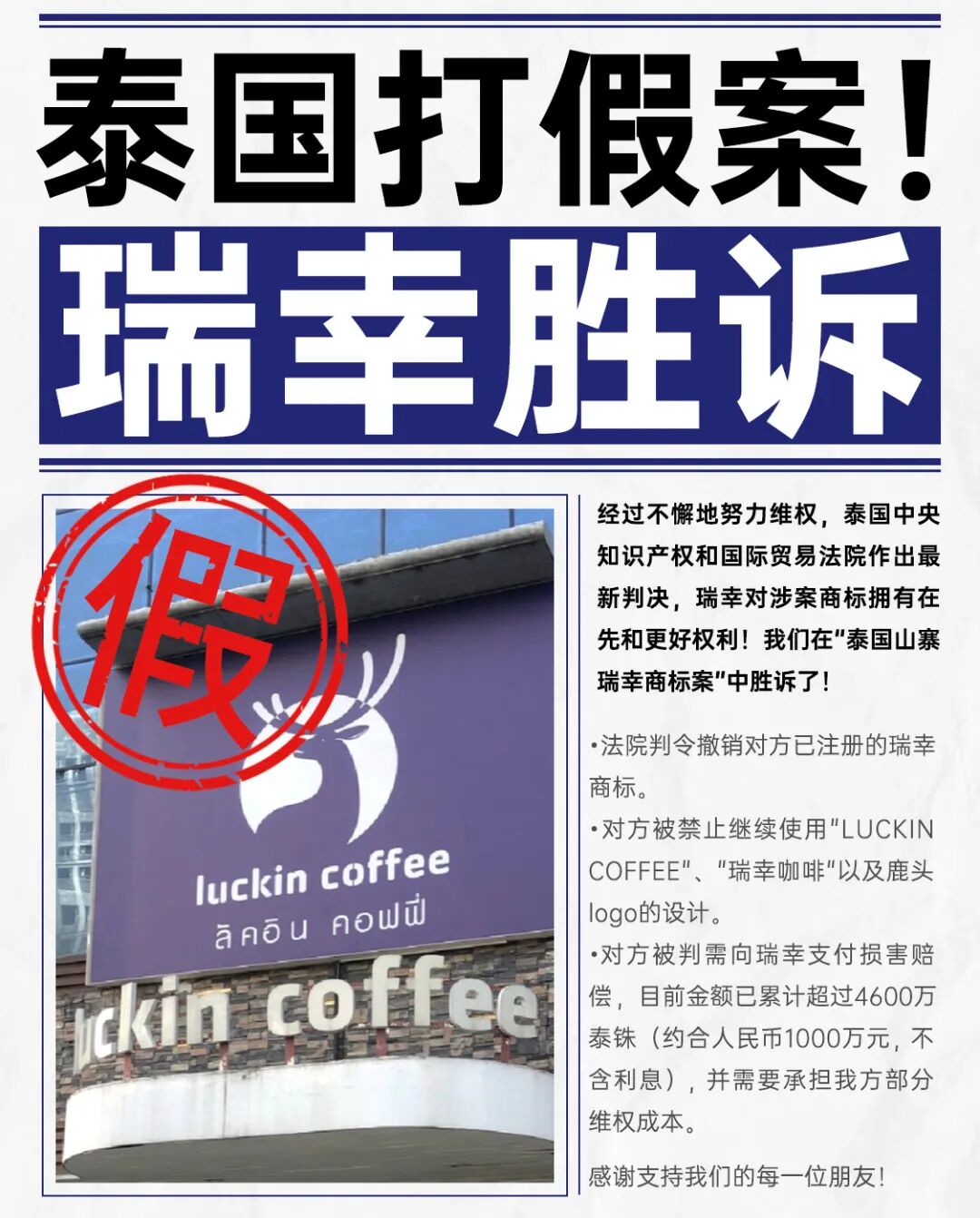 2025年3月,一场历时三年的跨国商标诉讼尘埃落定——中国瑞幸咖啡(Luckin Coffee)在泰国最高法院终审胜诉,泰国“镜像瑞幸”运营方皇家50R集团被判赔偿1000万元人民币,并永久禁用瑞幸品牌标识。
