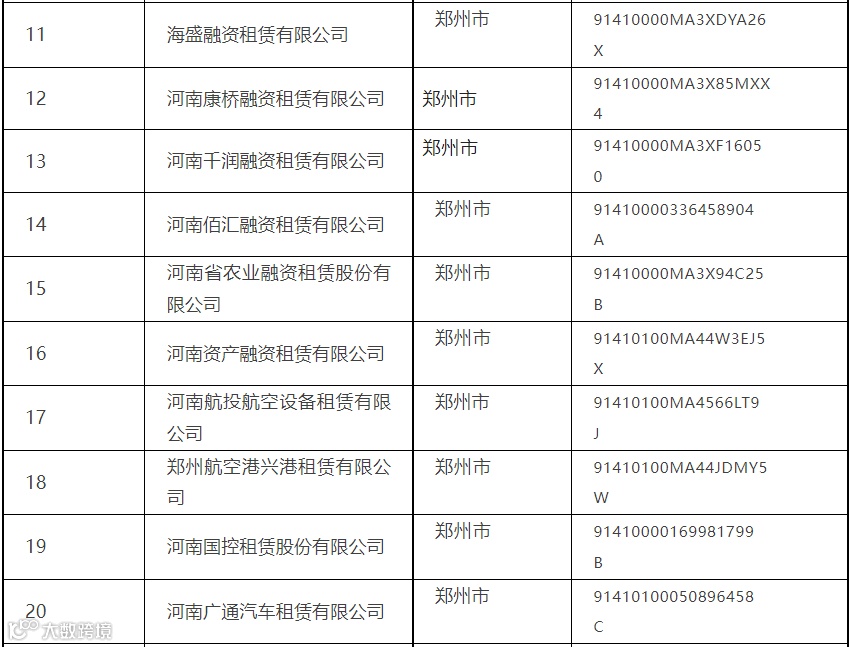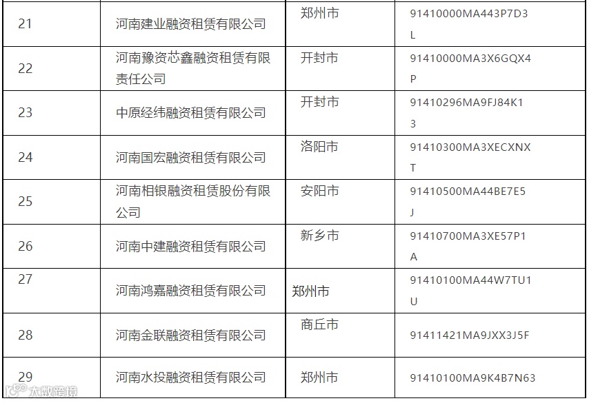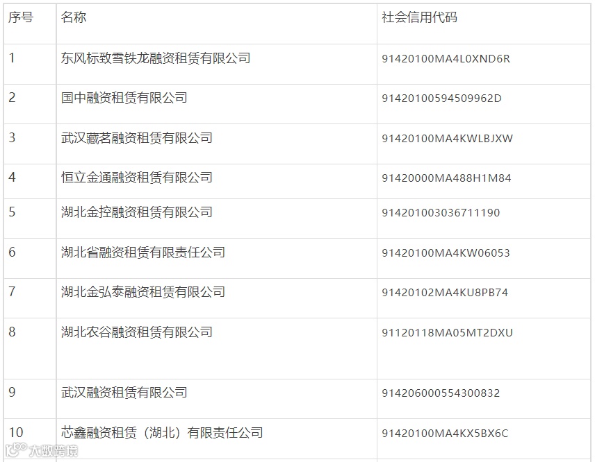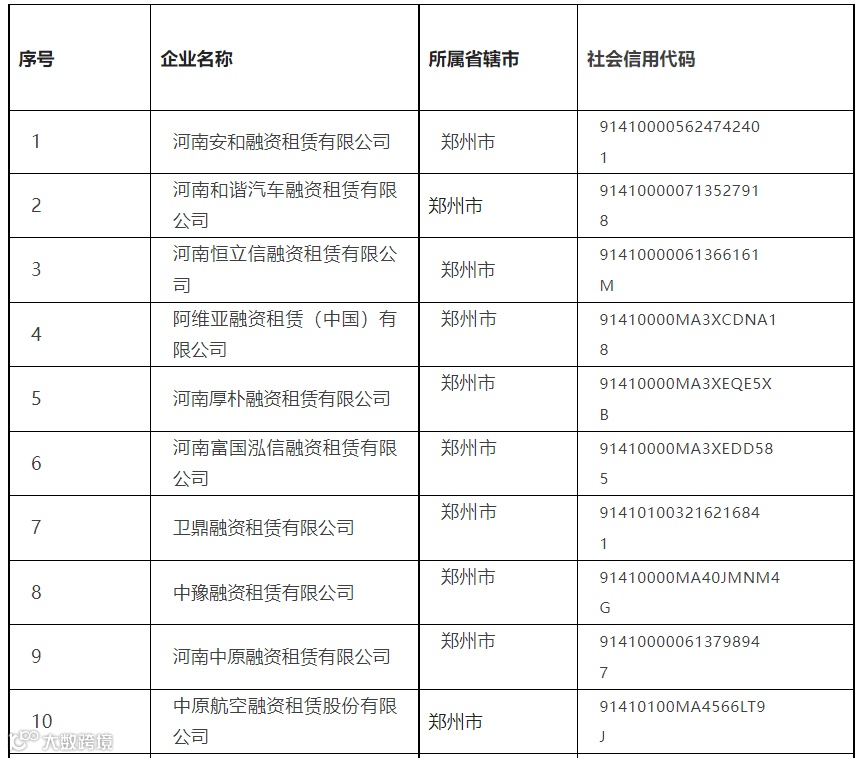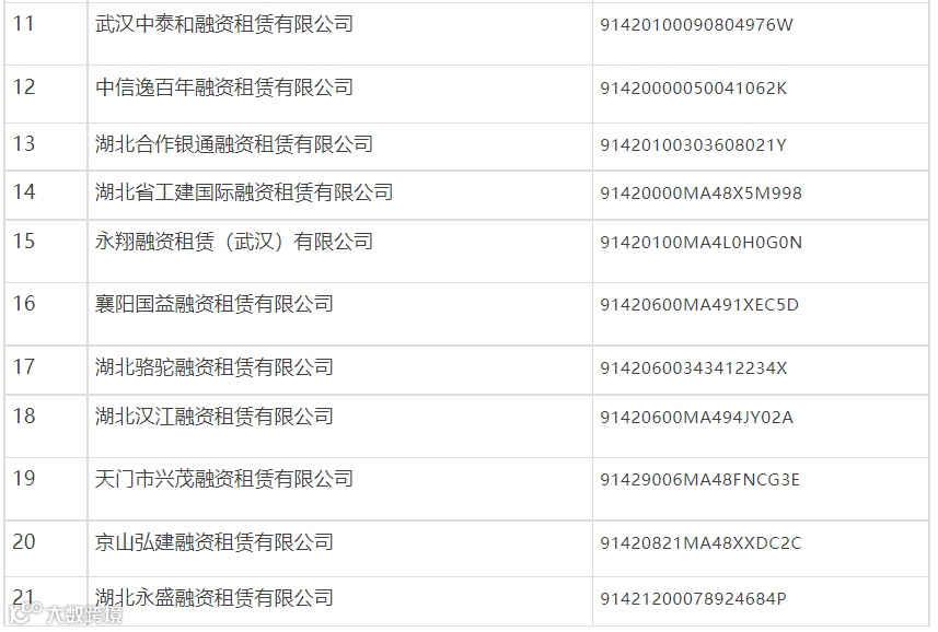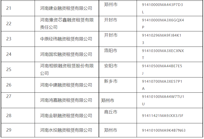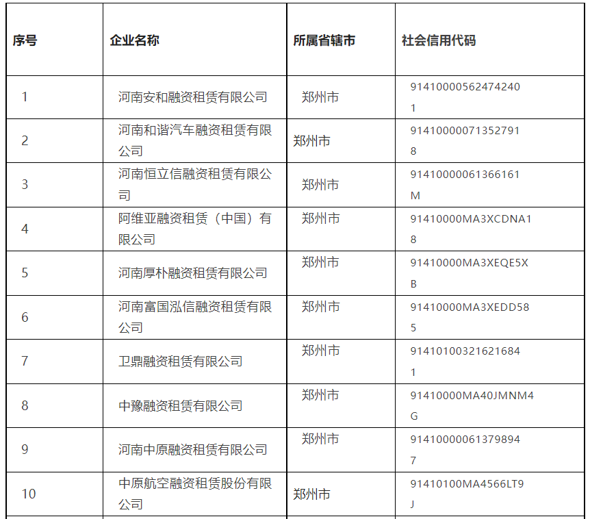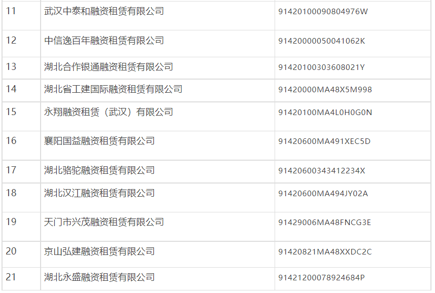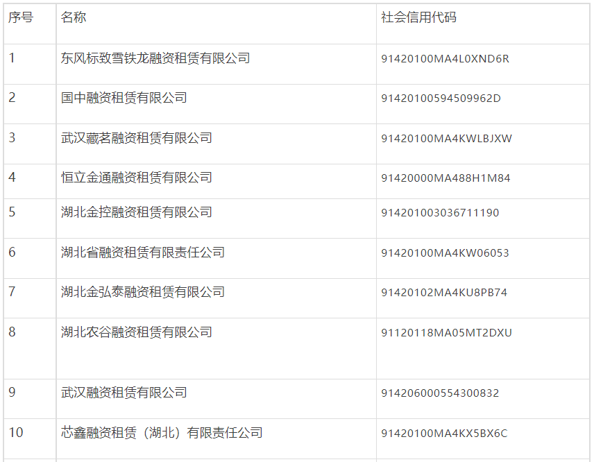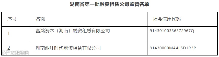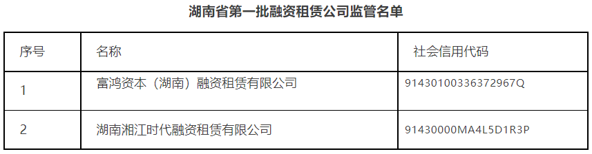 在2021年3月,湖南省省地方金融监督管理局关于公布纳入湖南省第一批融资租赁公司监管名单的公告,