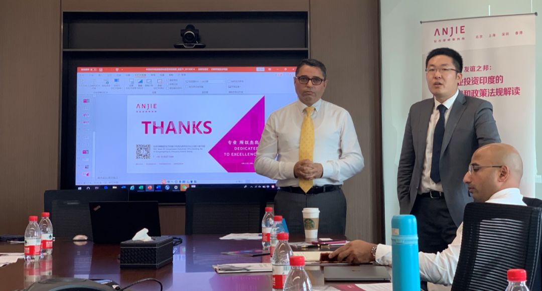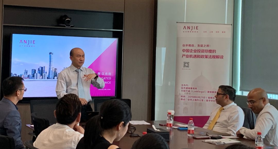 北京安杰律师事务所与印度大恒竺成(Linklegal)律师事务所携手于2019年6月21日在安杰上海办公室举办了“山水相连,友谊之邦:中国企业投资印度的产业机遇和政策法规解读”专题讲座。该讲座吸引了数十位来自各个行业的企业法务部门、投资部门等代表参加。中国公司法务联盟为本次讲座活动提供了协助。