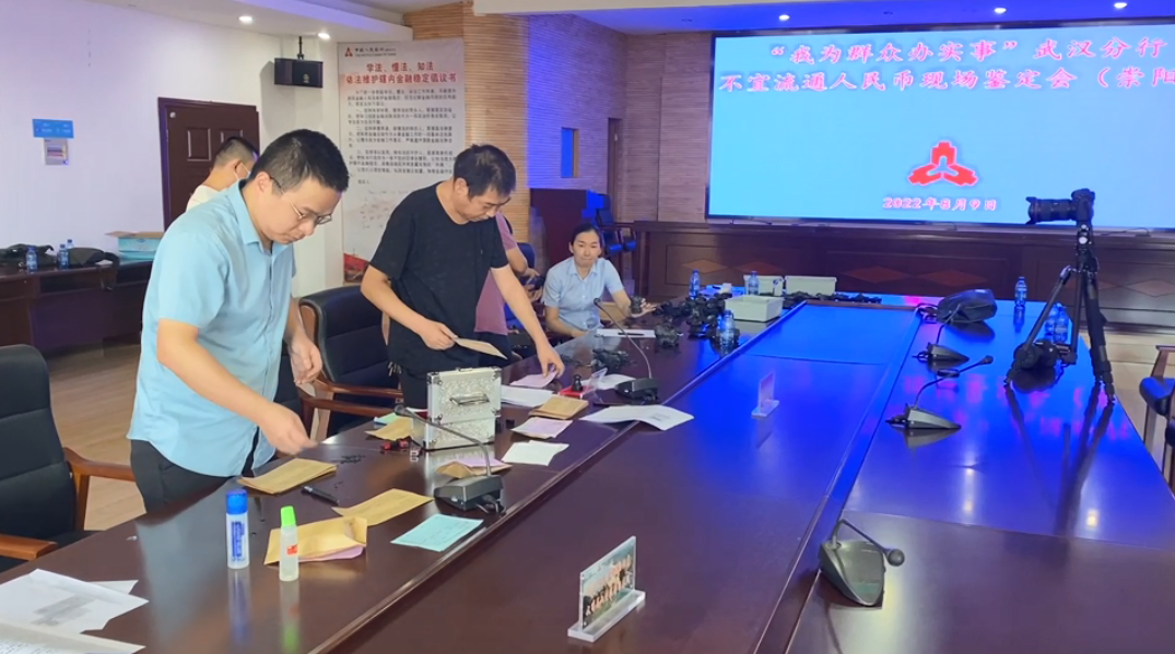 8月9日一早,人行咸宁市中支、崇阳县支行以及崇阳县农商银行工作人员在人行武汉分行鉴定专家指导下,对火烧币进行逐一辨别、鉴定、清点。